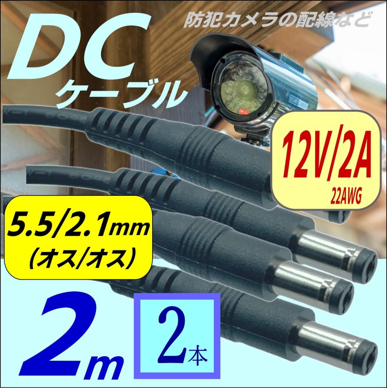 CNCTWO(コネクトツー) DCケーブル 外径5.5/内径2.1mm(オス/オス) 12V/2A ACアダプタ 監視 防犯カメラ ソーラーパネル LED照明 ペット餌やり ビデオレコーダー電源供給ケーブル C25521xx (2m*2本)
