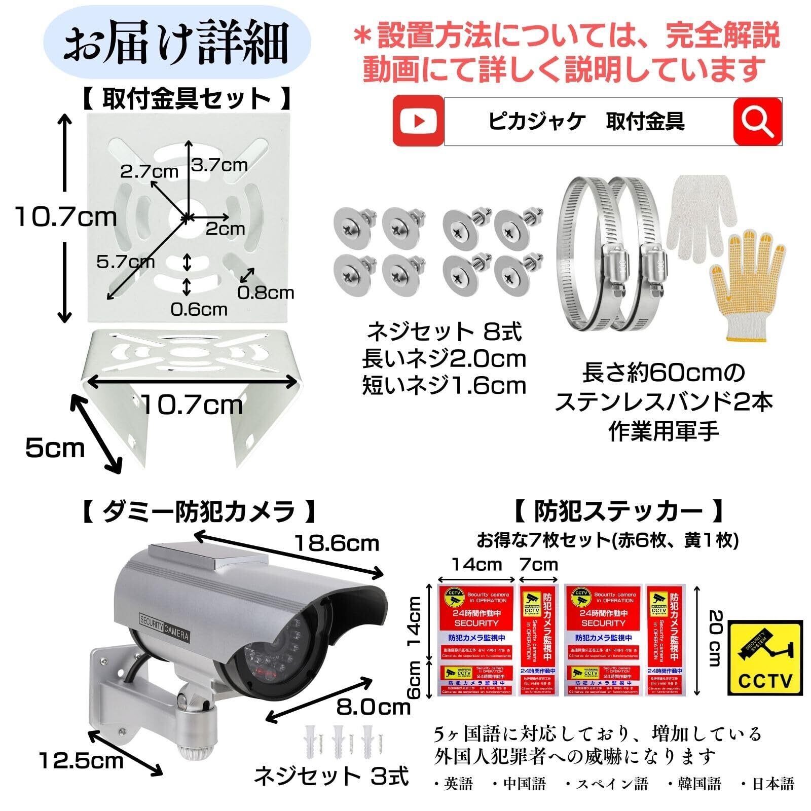 【人気商品】【TVタックルで紹介されました】 防犯カメラ ダミー 【 防犯設備士監修】ソーラー LED 5ヶ国語対応 防犯ステッカー 防水 ダミーカメラ 監視カメラ 【防犯ブランド ピカジャケ】 (シルバー [取付金具付きフルセット]) | jake