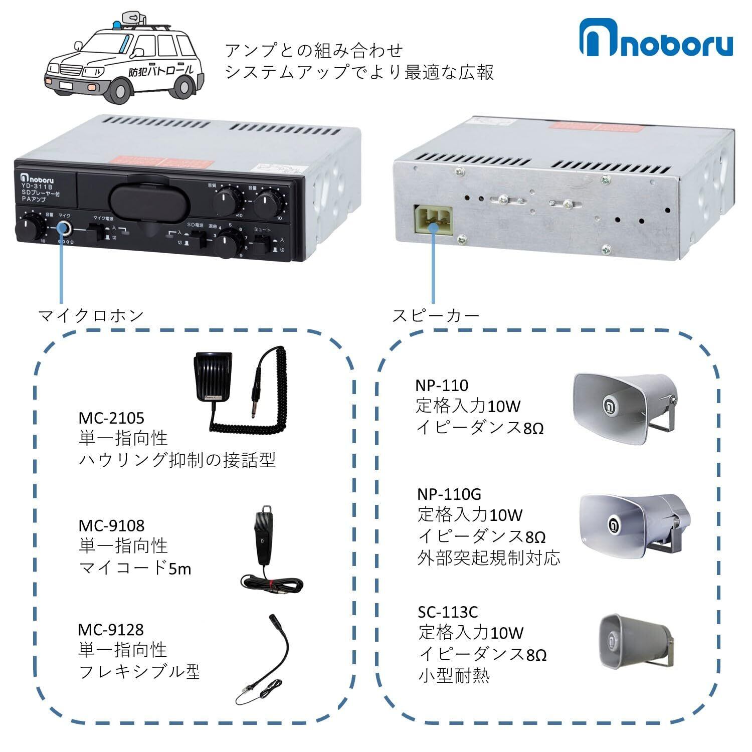 noboru(ノボル電機) 車載用SD・SDHCカードプレーヤー付PAアンプ 拡声器 電源DC12V/出力10W YD-311B