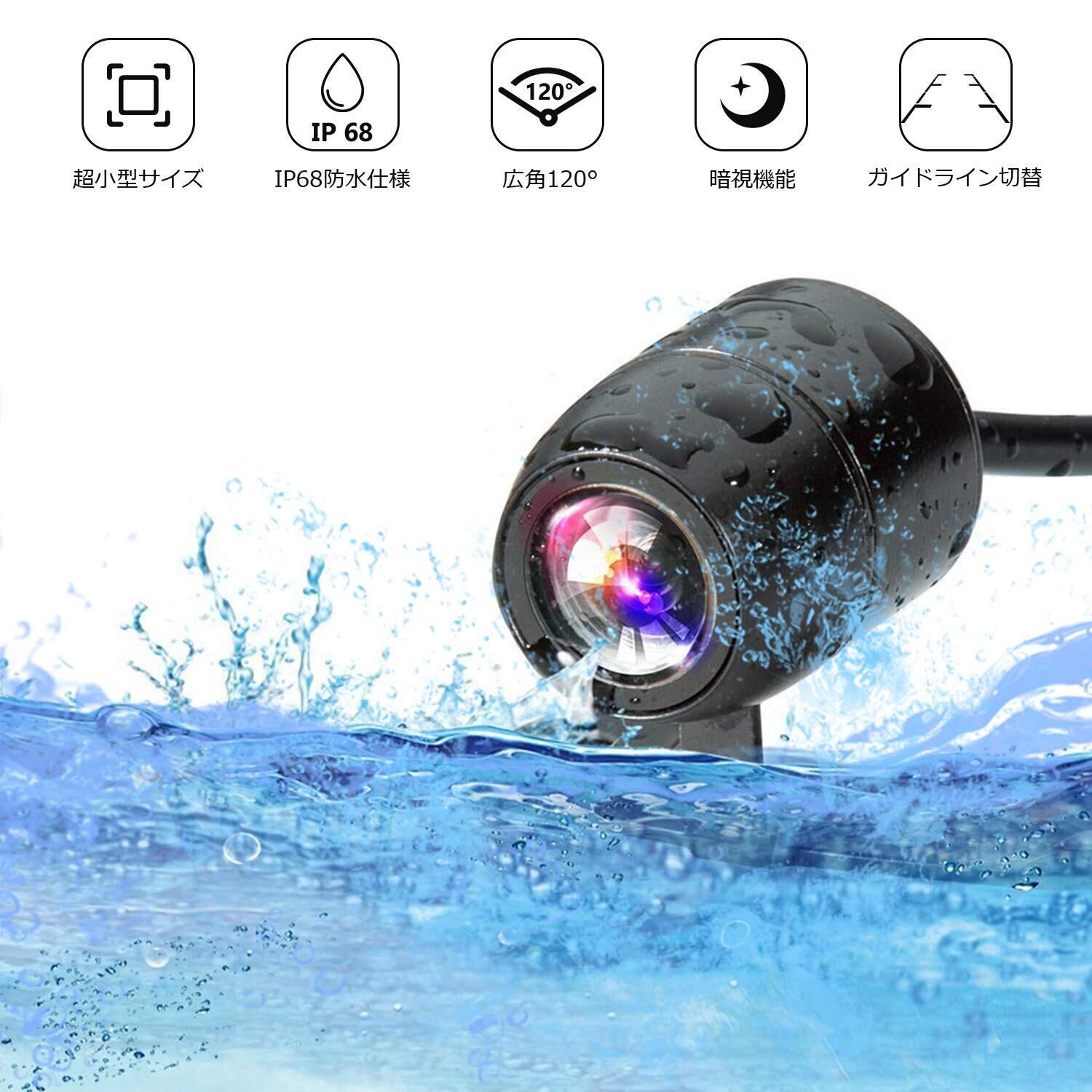 【ナイトビジョン対応】視野角度120度、0.5ルクスの低照度で夜でもしっかり車後方の状況をモニターに映れます。IP67防水仕様、丸型 コンパクト設計で、室内はもちろん、車外への取り付けも可能です!