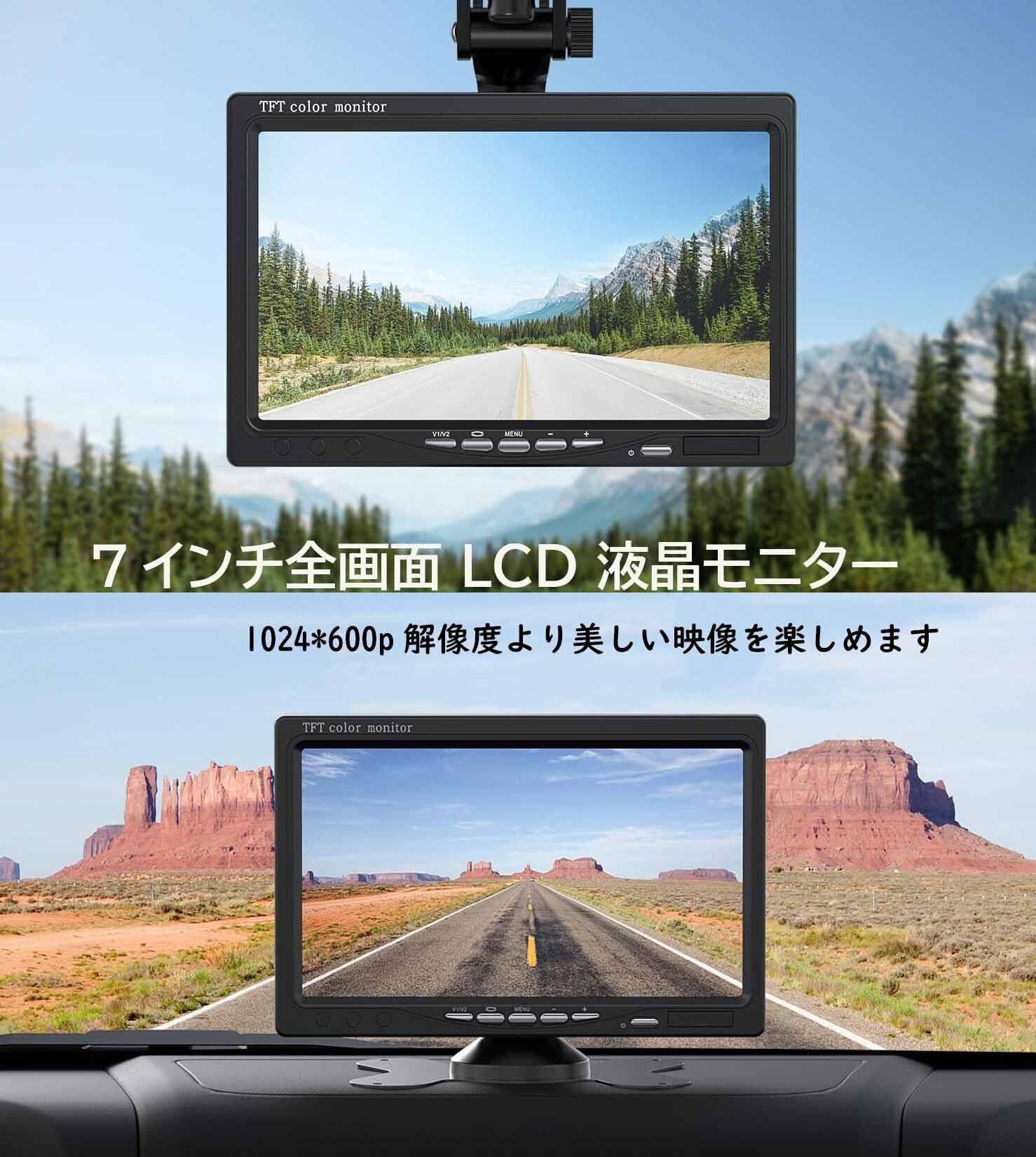 2024年更新版です。 7インチモニター+バックカメラセット PRO 12V/24V兼用 バックLEDカメラセット+一体型 15Mケーブル 乗用車、トラック、バス、重機等対応