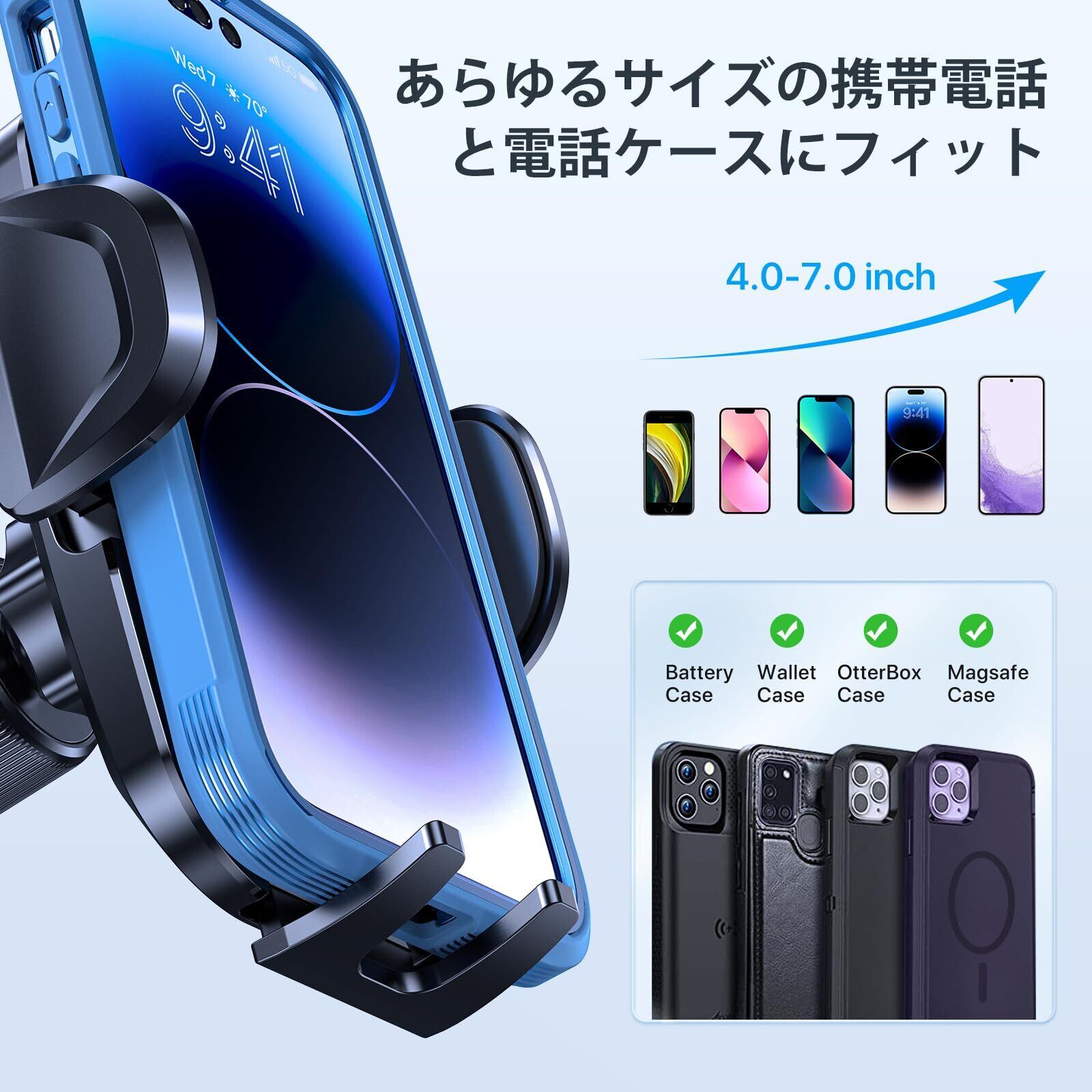 【様々なサイズのスマホに対応】車用スマホスタンドは4.0~7.2インチのスマホに対応。厚いケースを着用するスマホにもフィットできます。iPhone 15 Pro Max/15 Pro/15 Plus/15/14 Pro Max/14 Pro/14/13 Pro Max/13 Mini/12 Pro Max/12 Pro/12/XS Max/XR/X/8/8に対応Plus /7/7 Plus、Xperia、 AQUOS、Samsung Galaxy Note 20 Ultra/S23 Ultra/S23 Plus/S23/S22 Ultra/S22 Plus/S22/S21 FE/S20/S10e/S10 Plus/S9/S9 Plus/S8/S8 Plus、Huawei 、Xiaomi、レッドライスなど。