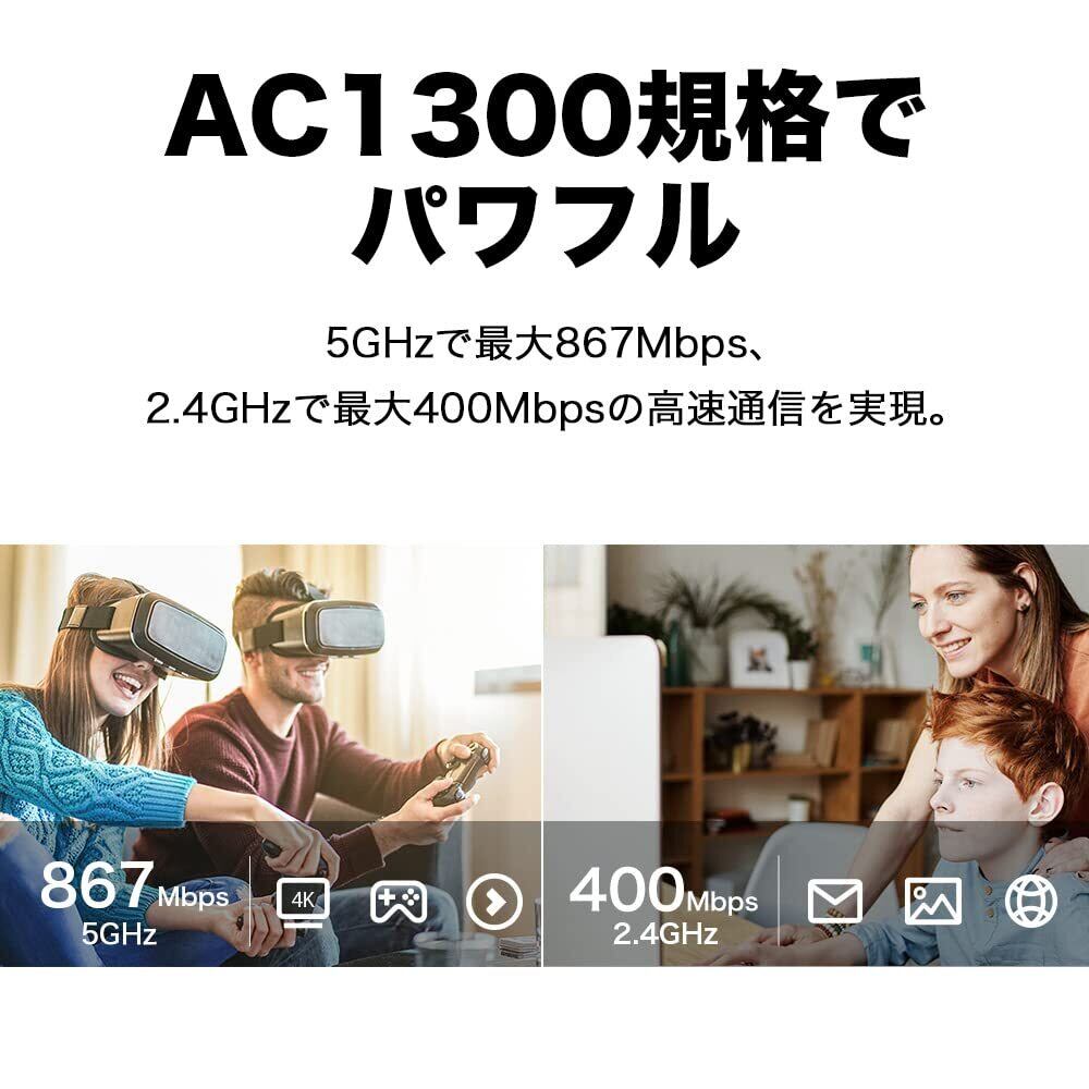 特徴 AC1300規格の高性能無線LAN子機