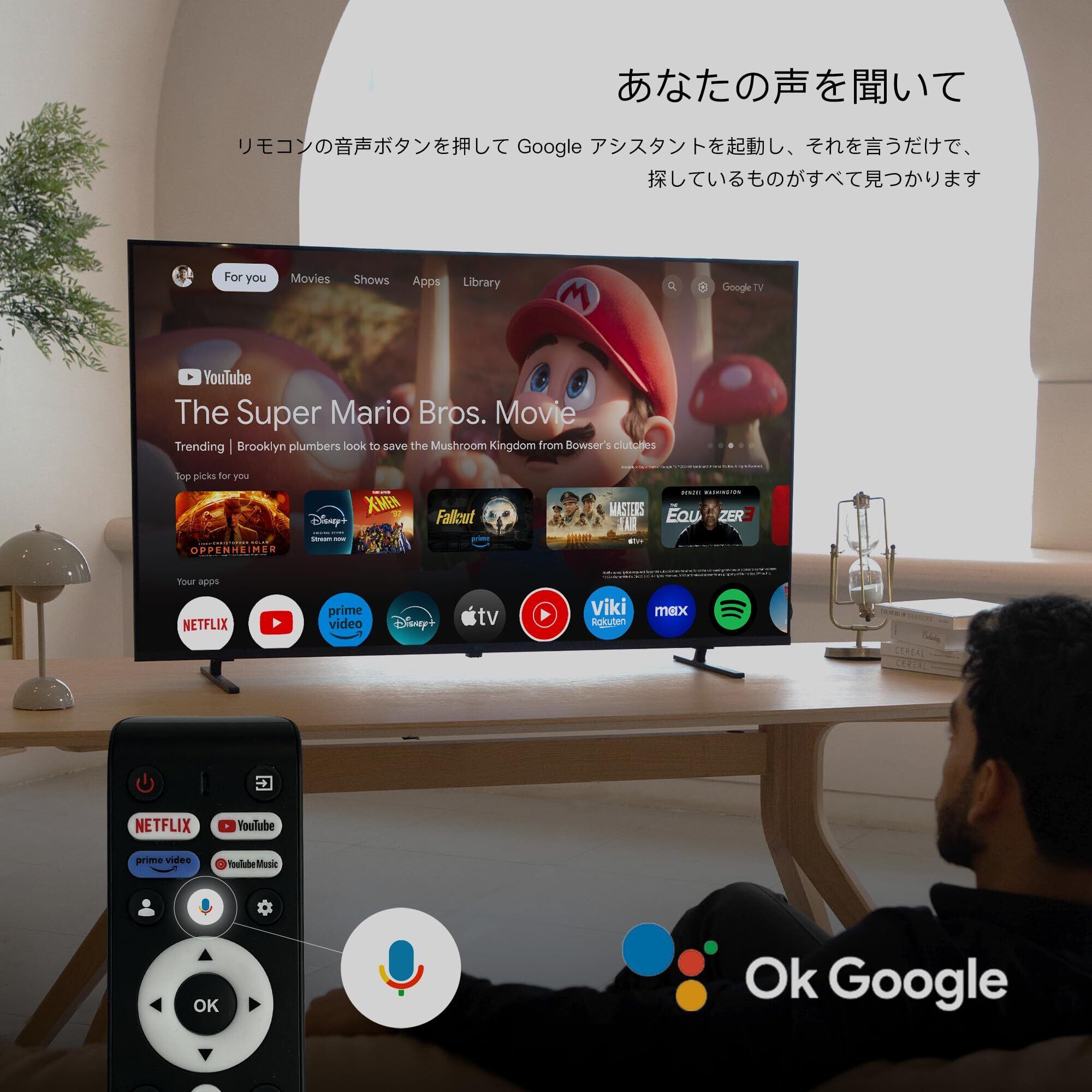 【Google OSを搭載】Google テレビ は包括的なエンターテイメント エクスペリエンスを提供し、ユーザーはさまざまなストリーミング サービス、アプリ、ライブ TV チャンネルに 1 か所でアクセスできます。 直感的なインターフェイスと音声コントロール機能により、お気に入りのコンテンツを簡単にナビゲートして見つけることができます。