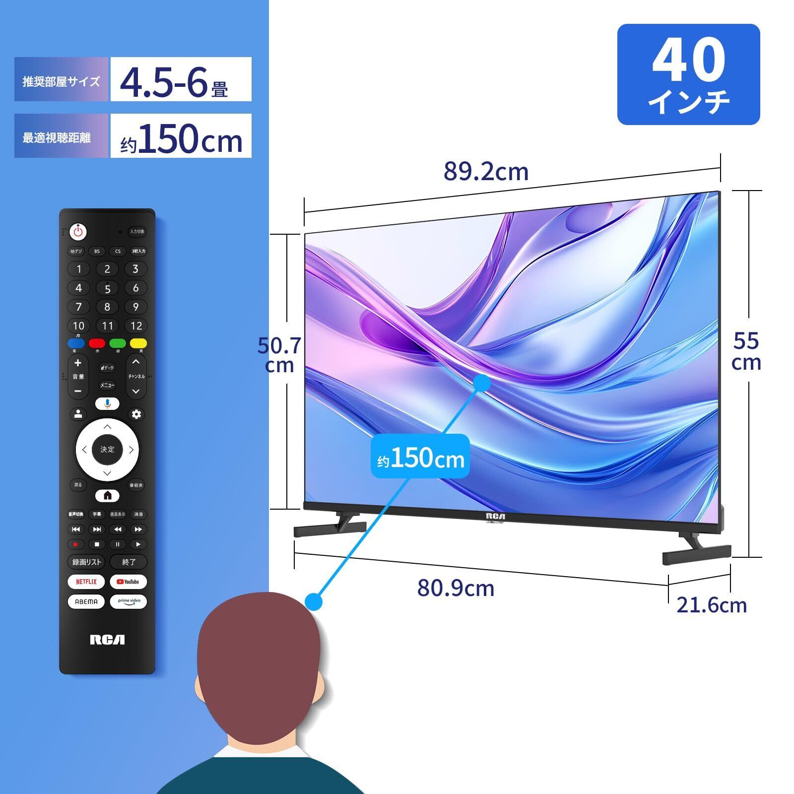 【2022最新】RCA テレビ 40型 フルハイビジョン Google TV ネット動画対応 ダブルチューナー 外付けHDD 裏番組録画対応 音声検索 クロームキャスト フレームレス Dolby Audio HDR ゲームモード 壁掛け VESA規格 2025年モデル R40Q1HG | jake