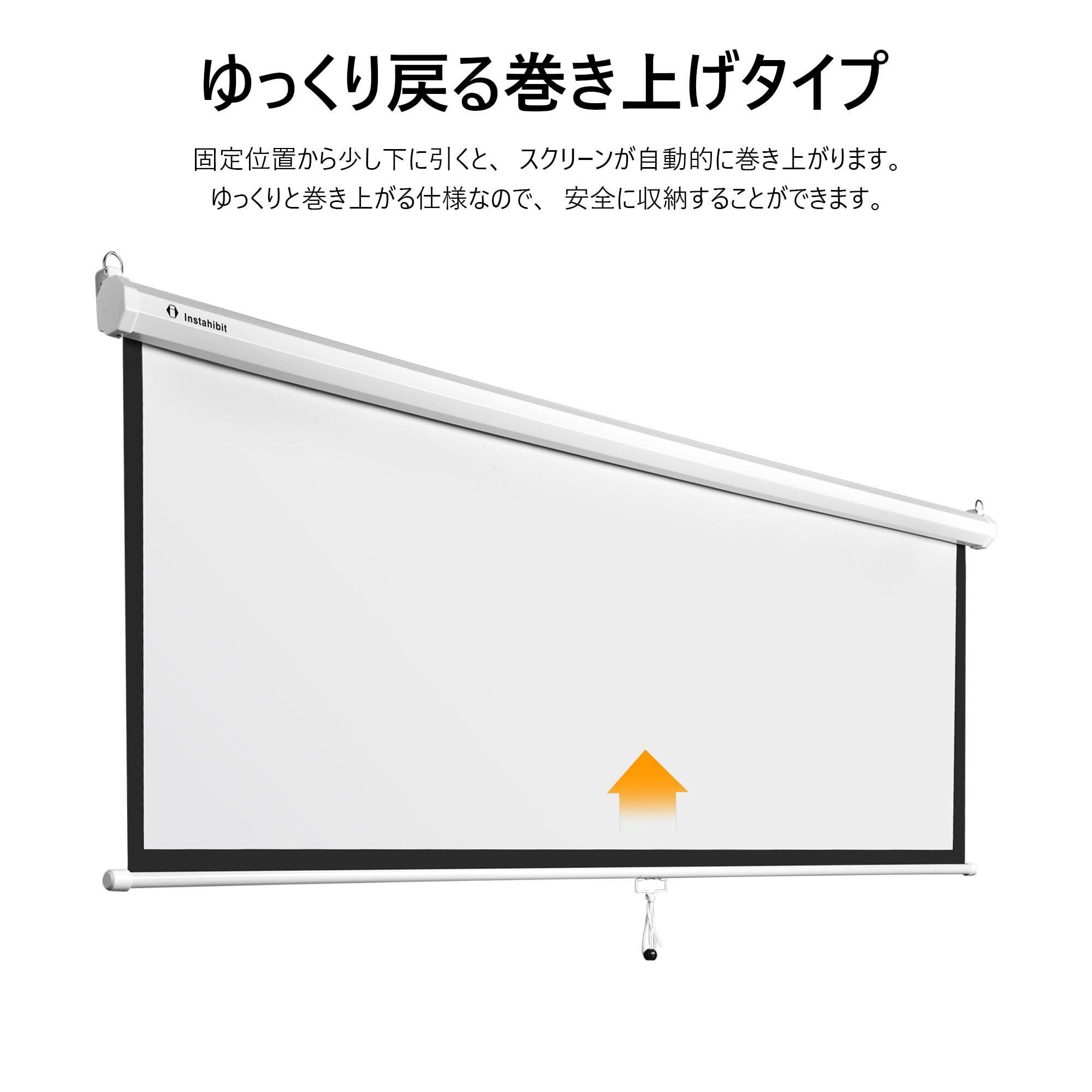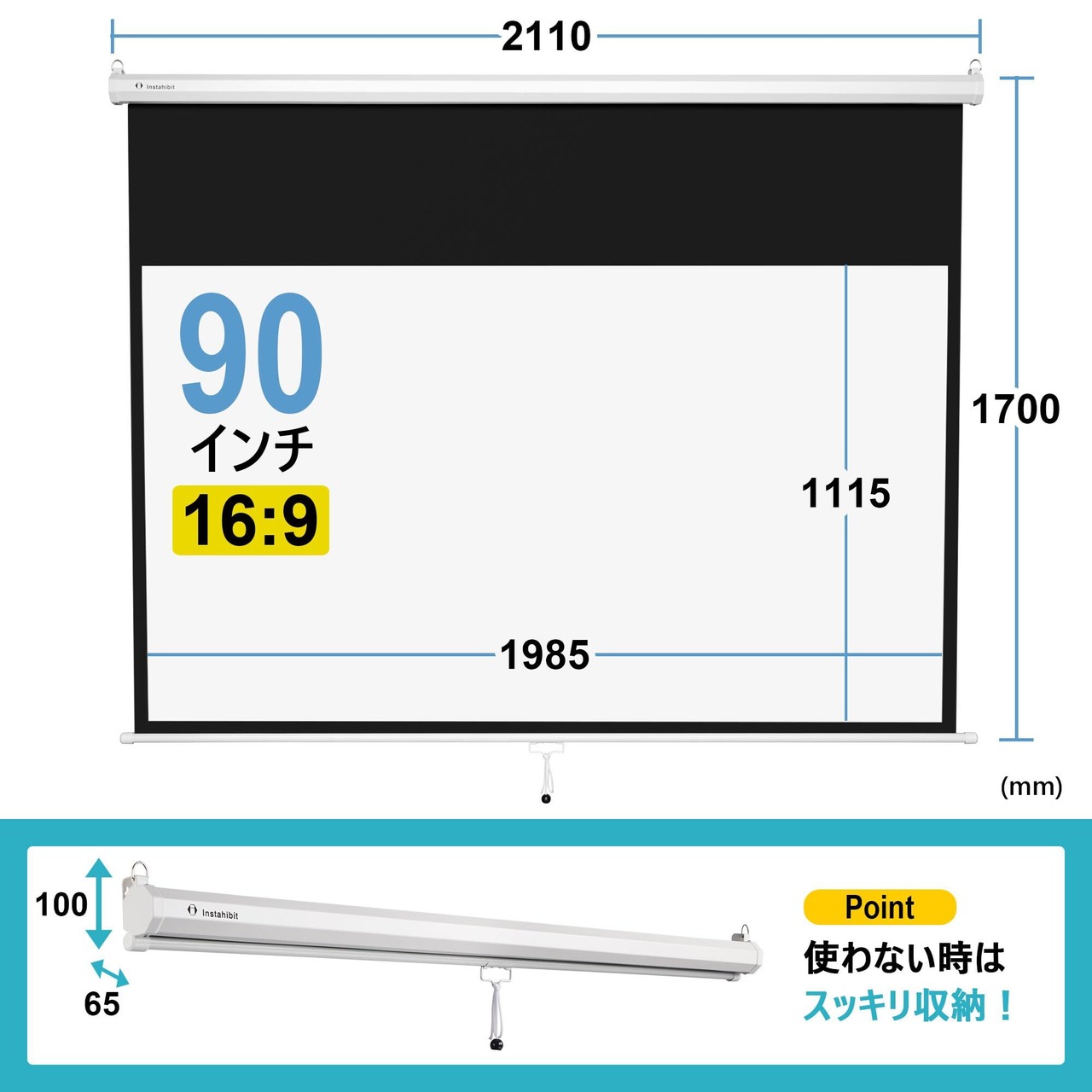 InstaHibit プロジェクター スクリーン 90インチ 16:9 吊り下げ プロジェクター用 ロールスクリーン 天吊り 壁掛け 巻き上げ 会議用 教室用 家庭用 プロジェクタースクリーン ホームシアター 投影スクリーン 手動巻上げ