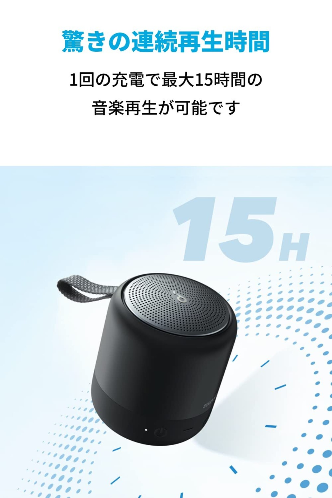 【在庫セール】Anker Soundcore Mini 3 Bluetooth スピーカー IPX7防水 コンパクト イコライザー設定 BassUpテクノロジー PartyCast機能 15時間連続再生 USB-Cポート採用 お風呂 ブラック | jake