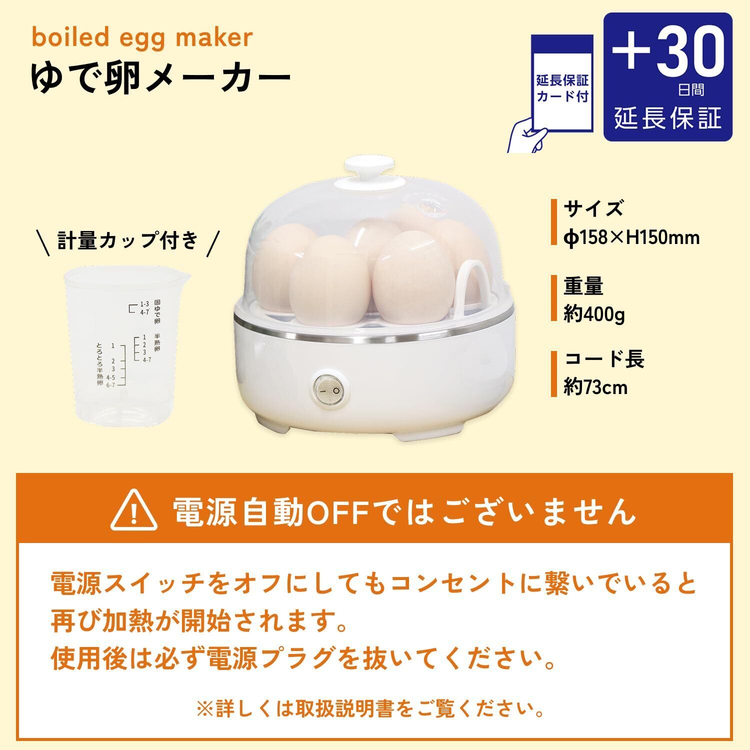 ゆで卵メーカー 自動 最大7個 レンジ不要 360W 固さ調節可能 電熱式 ゆで卵器 メーカー ゆで卵調理器 蒸し器 半熟卵 固ゆで卵 ゆでたまご ゆで玉子 煮卵 時短 調理家電 簡単 ホワイト 30日延長カード付き