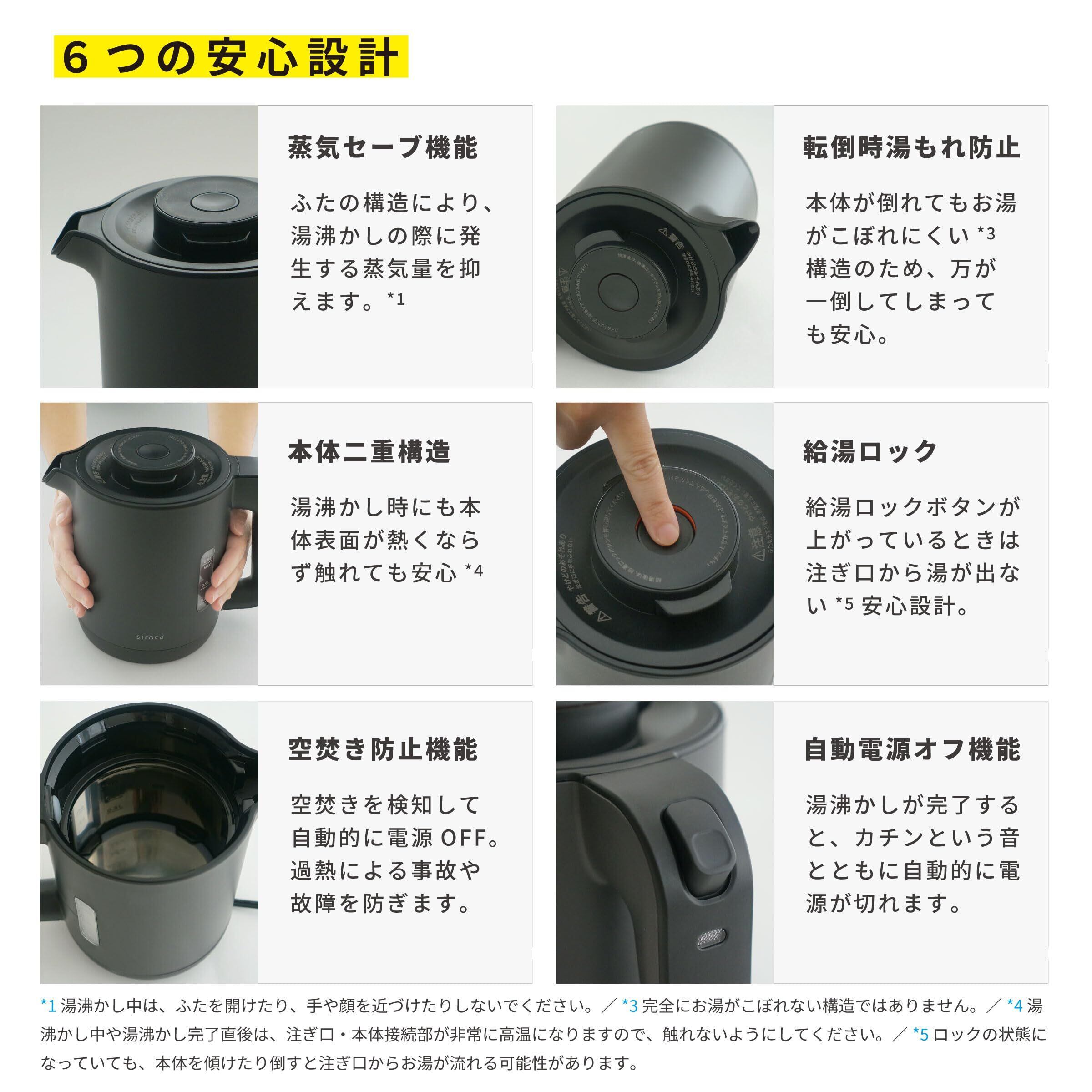 シロカ 電気ケトル ミニポット/電気ポット/0.8L/1300W/ハイパワー/蒸気セーブ機能/安心設計/ふた着脱可/おしゃれ/ギフト/プレゼント SK-A151(K) ブラック