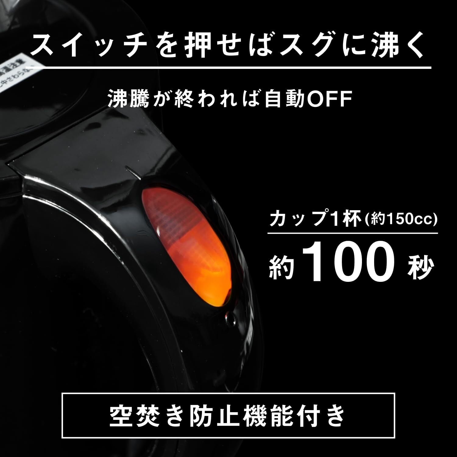 お湯が沸いたら自動でスイッチOFF。ランプの消灯でお知らせします。 必要なときに必要な分お湯を沸かすので経済的。