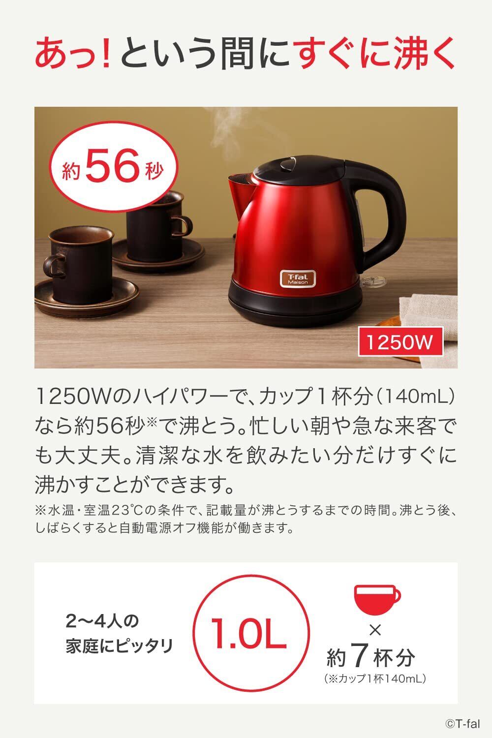 ティファール 電気ケトル 1.0L ステンレスボディ 「メゾン ワインレッド」 KI271FJP