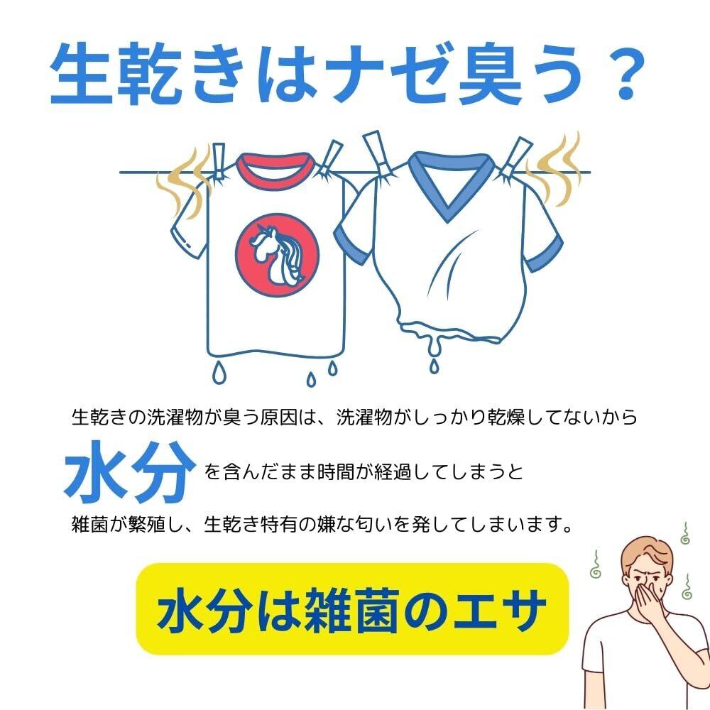 【 超高速脱水の脱水力】 一般的な洗濯機で洗濯、脱水したものの約2倍の脱水力 ●生乾き特有の嫌な匂いにさよなら 生乾きの原因=しっかり乾燥できず水分を含んだまま時間が経過してしまうと雑菌が繁殖→生乾き特有の嫌なニオイの元に しっかり脱水することで生乾き特有の嫌な匂いを防ぎます。 ●通常の倍絞れるから乾きが早い 乾燥時間が1/2になり時間短縮につながります。