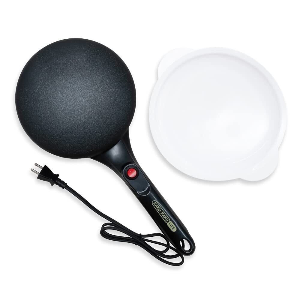 RAKU・RAKU LIFE クレープメーカー ブラック 手軽 フッ素加工 温度調節 安全装置付き 焦げ付きにくい お手入れしやすい (ブラック)
