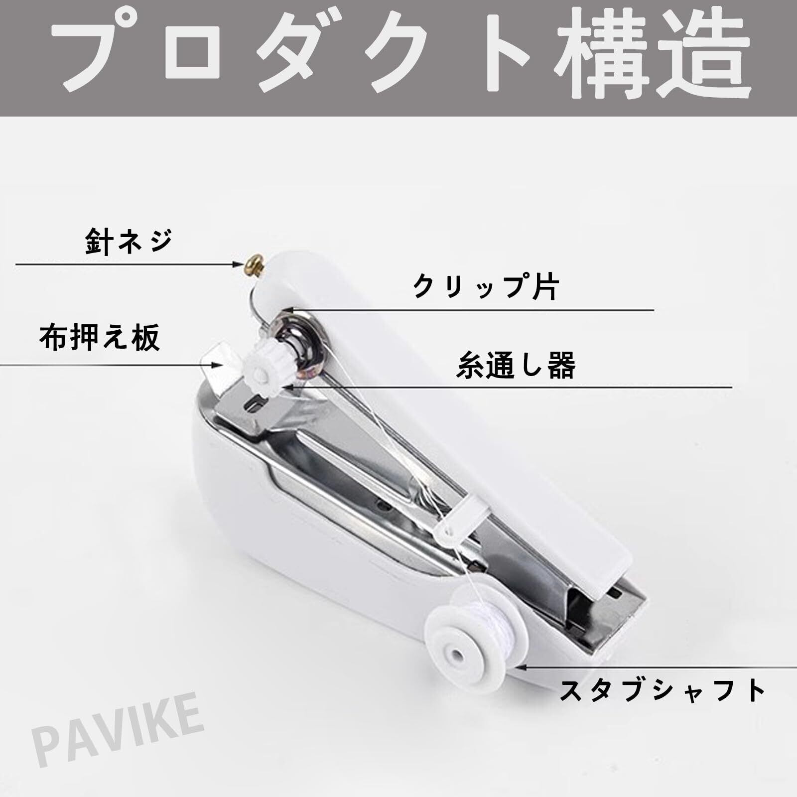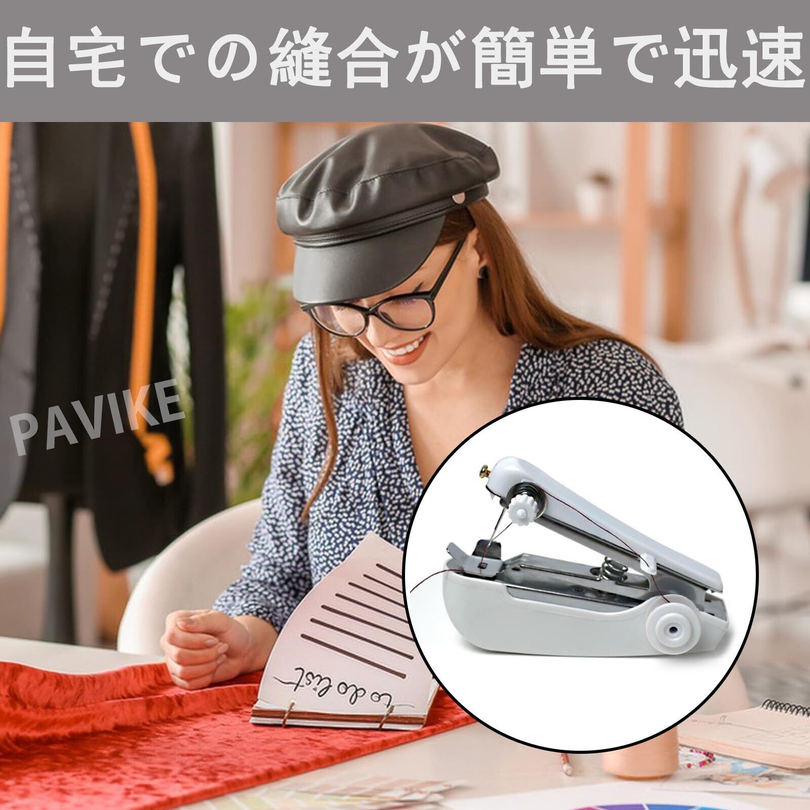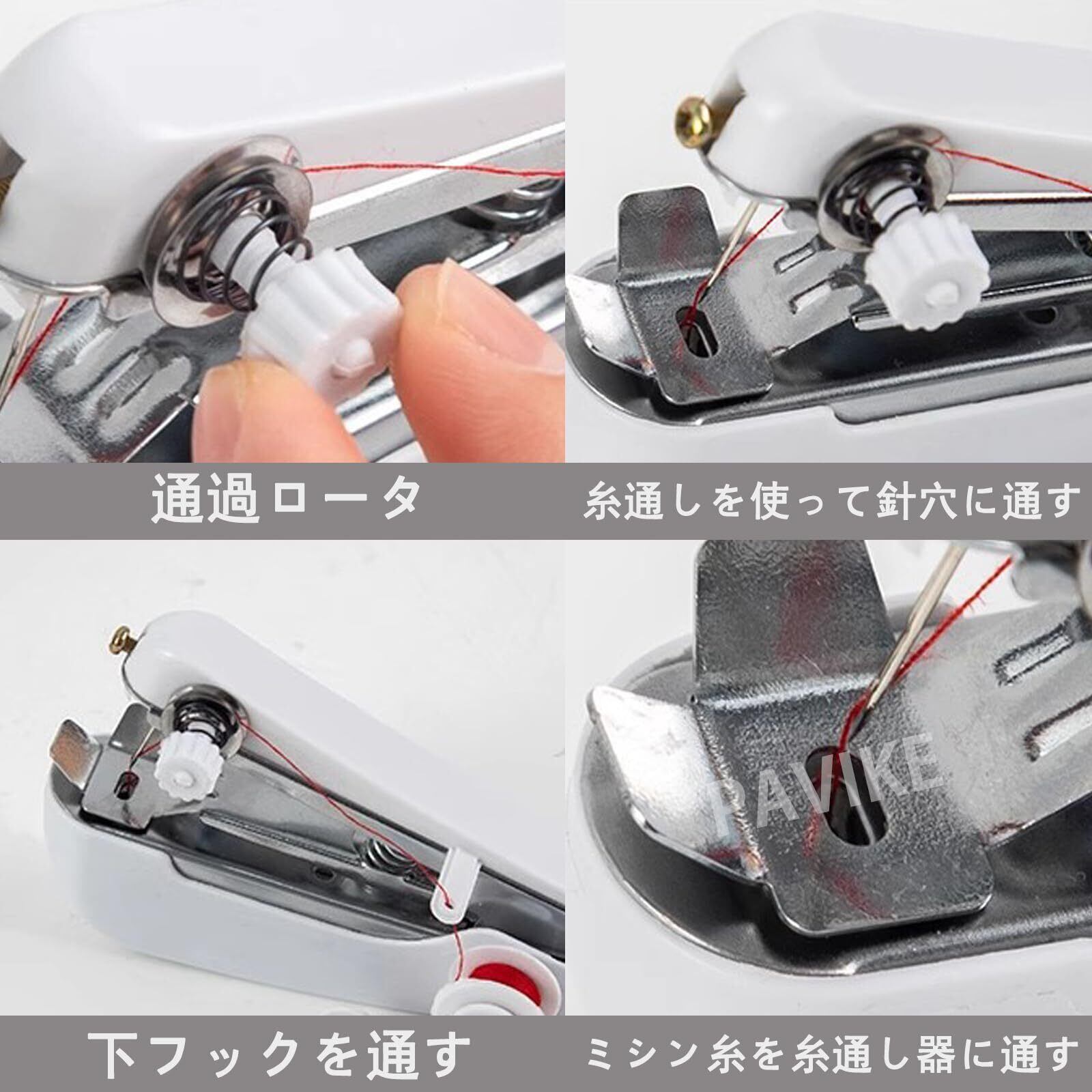 PAVIKE ミニミシン ハンドミシン 片手で縫える 手持ち コンパクト ポータブル 操作簡単 小型 裾上げ 便利 手作り 縫い物 縫製 家庭用 初心者適用 ホワイト