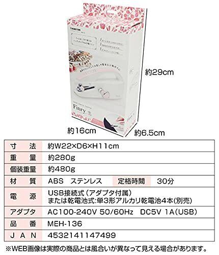 【仕様】 ・寸法:約W22×D6×H11cm ・重量:約280g ・材質:ABS ステンレス ・定格時間:30分 ・電源:USB接続式(アダプタ付属)または乾電池式(単3形アルカリ乾電池4本 ※別売) 【セット内容】 ・本体 ・USBコード ・アダプタ ・予備ミシン針 ・糸通し ・ピンセット ・ボビン5個