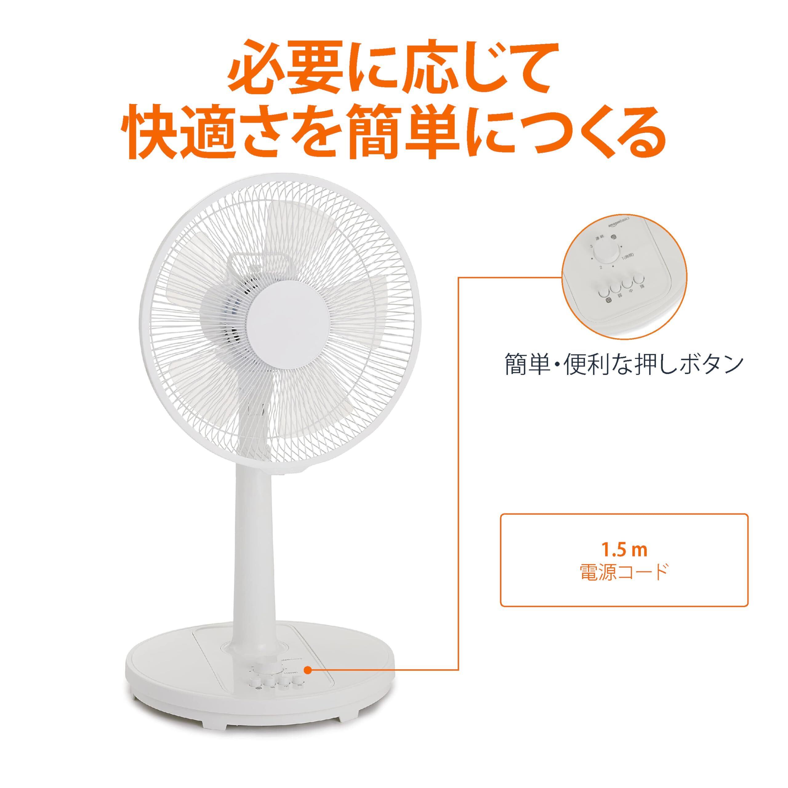 手軽に涼風を送る台座付リビング扇風機。首振り : 左右方向に合計75度 (自動) 、上下方向に合計36度 (手動)