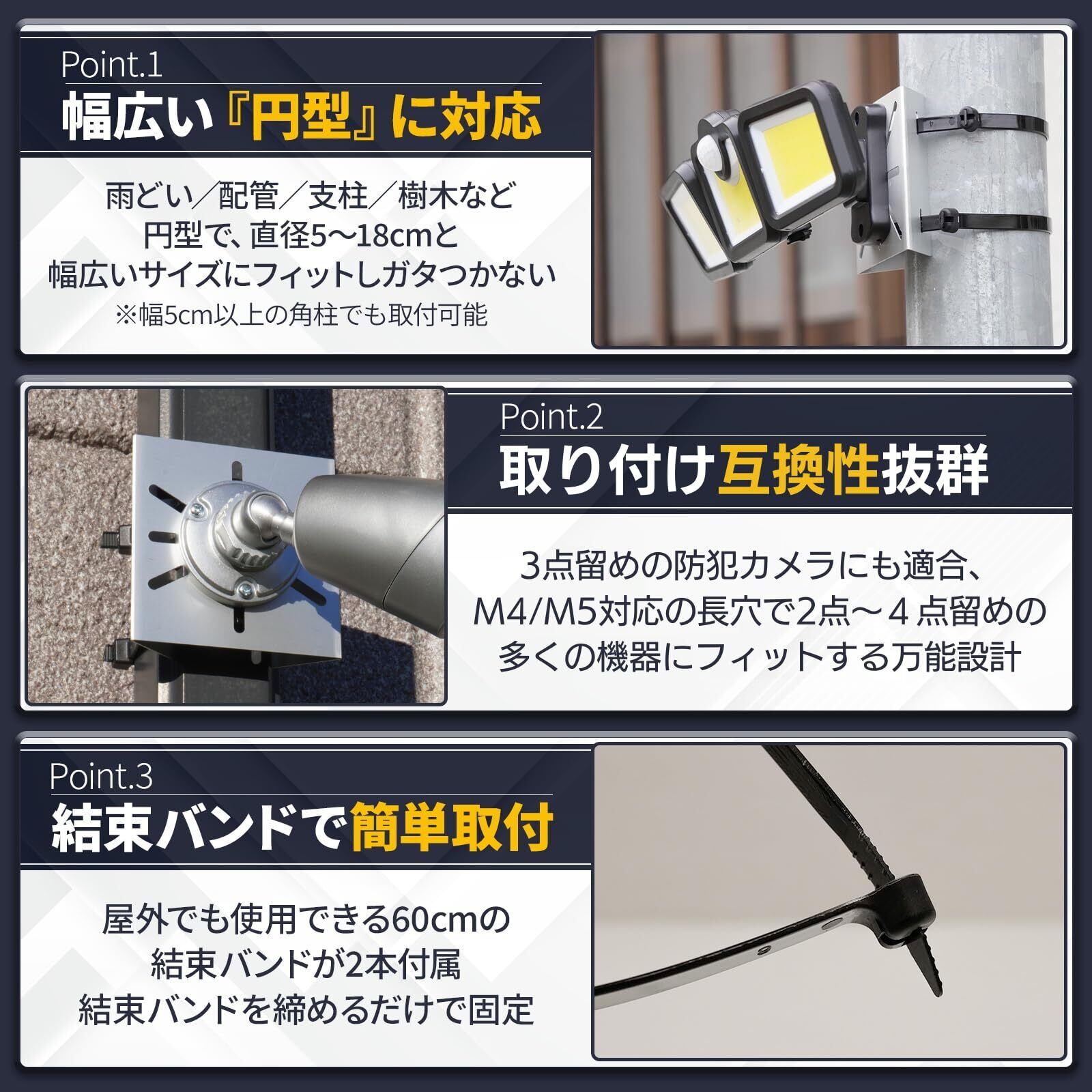 Heptus 【場所を選ばず簡単取付】 取付金具 防犯カメラ ソーラーライト 円柱 3点留め対応 結束バンド