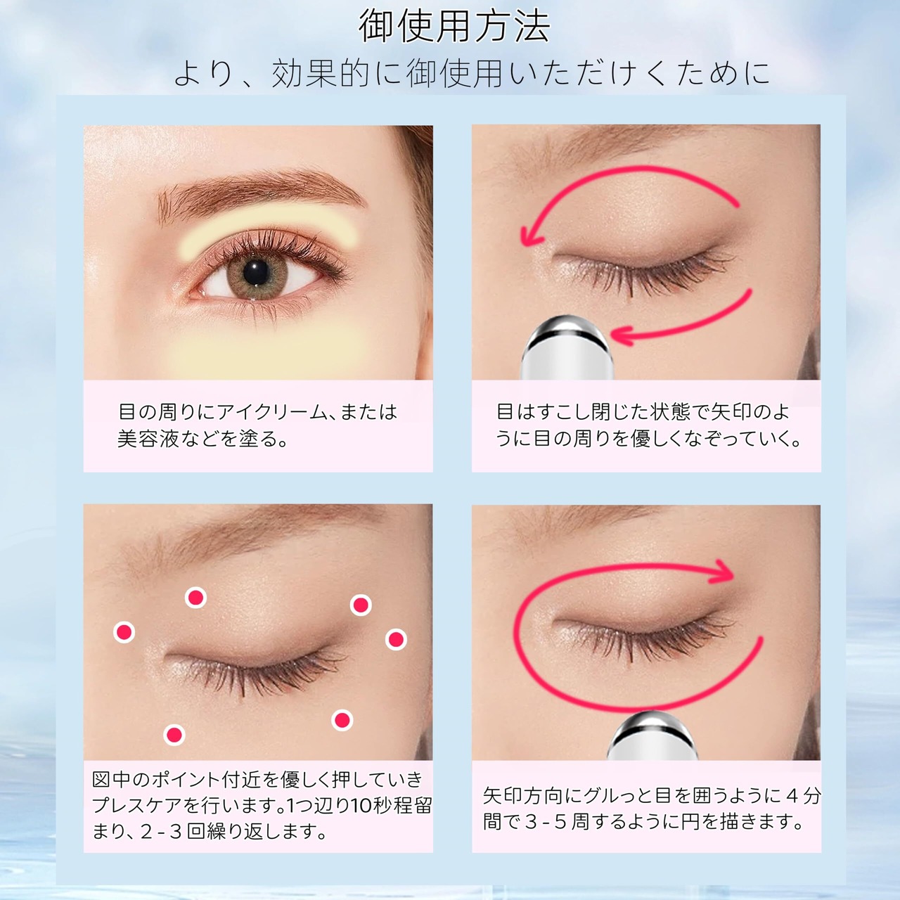 【目元専用美顔器】Rakukurasiの2024年最新目元美顔器は、温熱、音波振動、イオン導入、2色LEDが一体化。デザインと軽さで毎日の美容を格上げ。目元が気になる方や若い方も積極ケアしましょう!