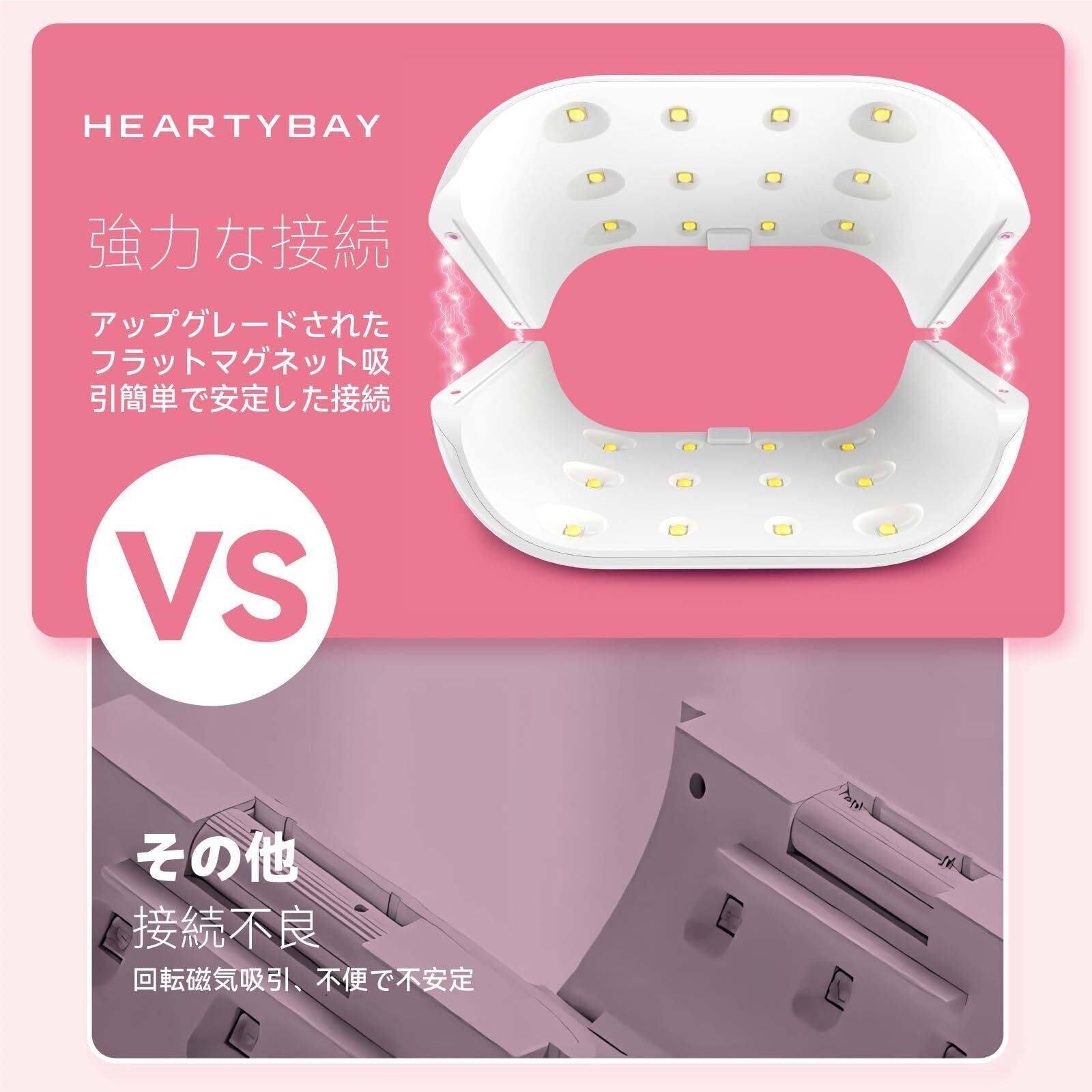 両面デザイン:Heartybay UVランプの両面デザインにより、あらゆる角度から紫外線を照射し、レジンの硬化時間を大幅に短縮します。複雑で厚みのある形状でも、完璧に均一に硬化でき、効率を大幅に向上させると共に、レジンの手作り体験をより快適にします。