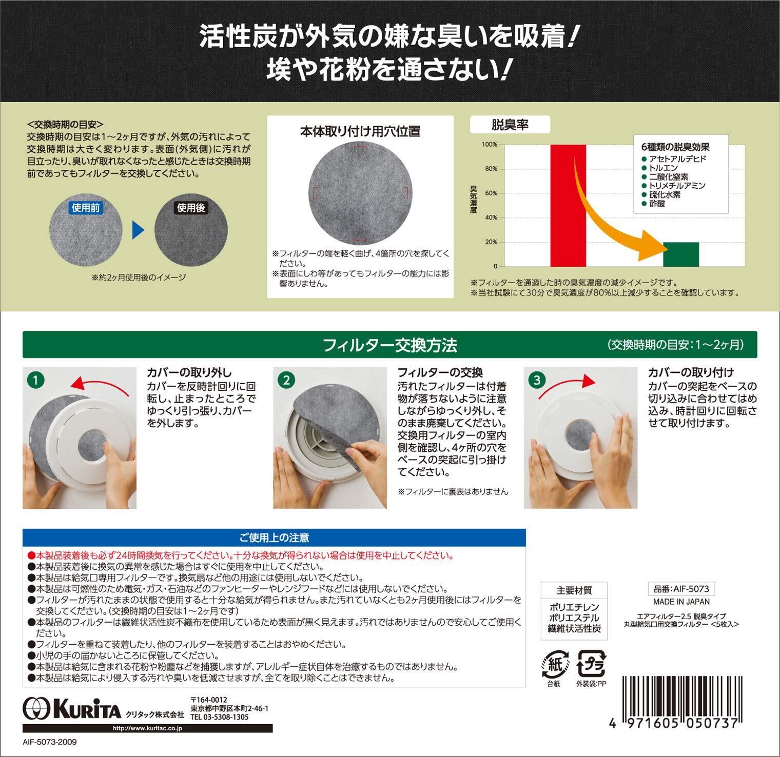 クリタック(Kurita) エアフィルター2.5 脱臭タイプ 丸型給気口用交換フィルター5枚入 日本製 AIF-5073 グレー