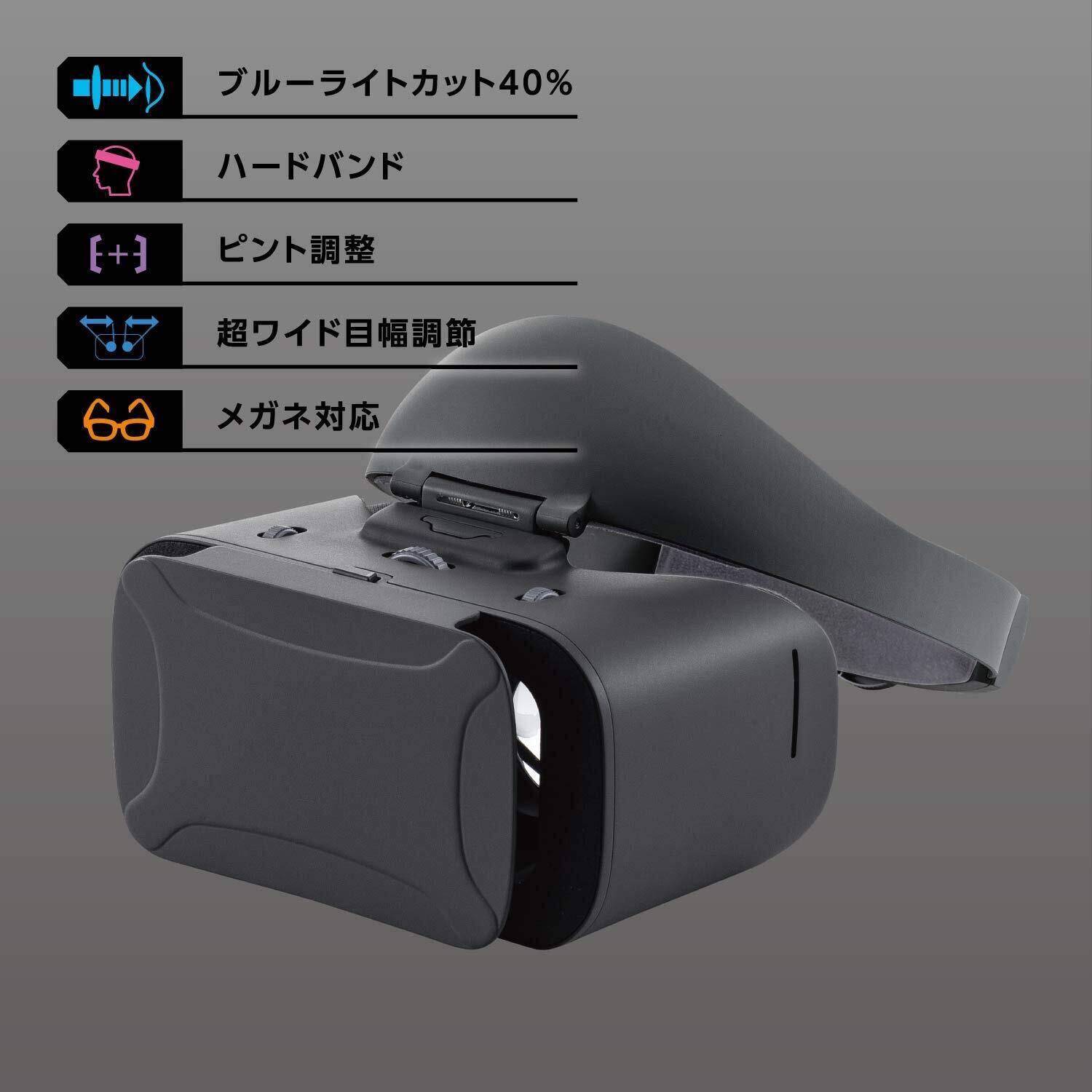 エレコム VRゴーグル VRヘッドセット 【ブルーライトカット40%】 ピント調節 目幅調節 ハードバンド ブラック VRG-GVSB01BK