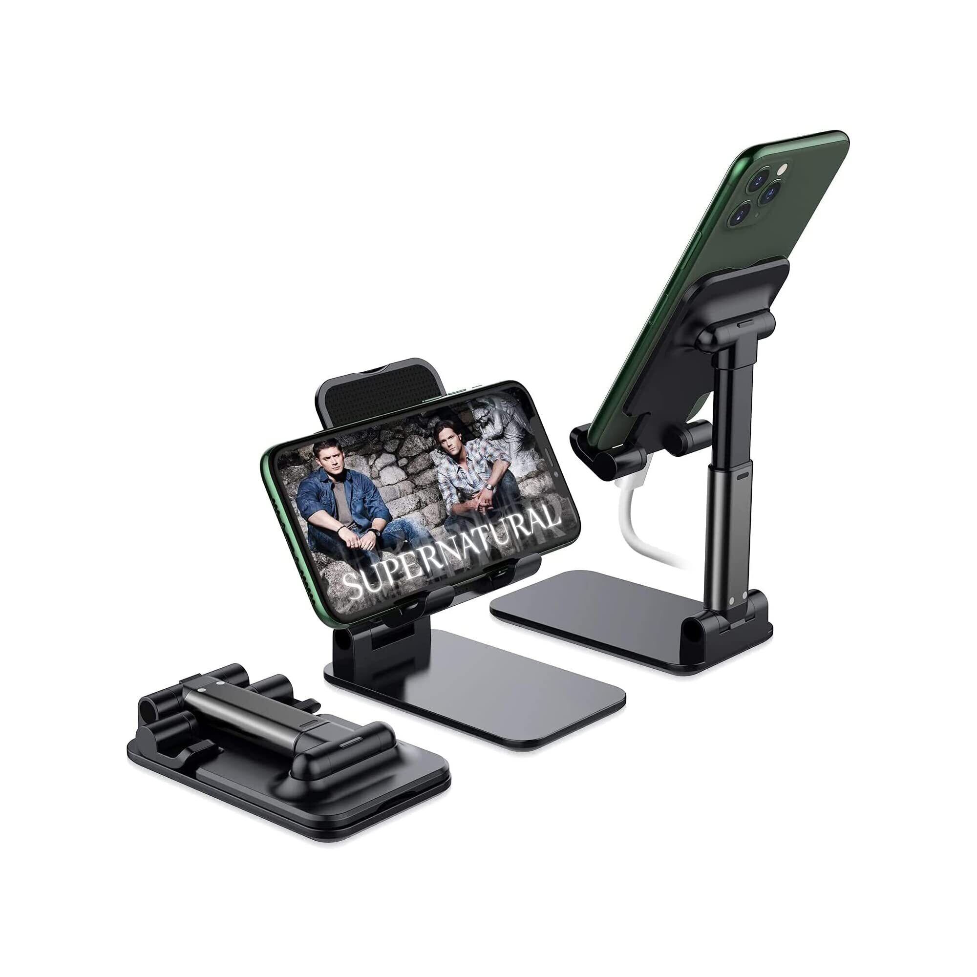 【新着商品】スマホスタンド ホルダー角度、幅と高さ調整可能な携帯電話卓上スタンド PCスタンド【滑り止め/充電便利/折りたたみ式】iPhone/iPad/Android/Nintendo Switch Lite/Kindleなど携帯電話 タブレット ゲーム機 電子書籍 (強化版-黒)