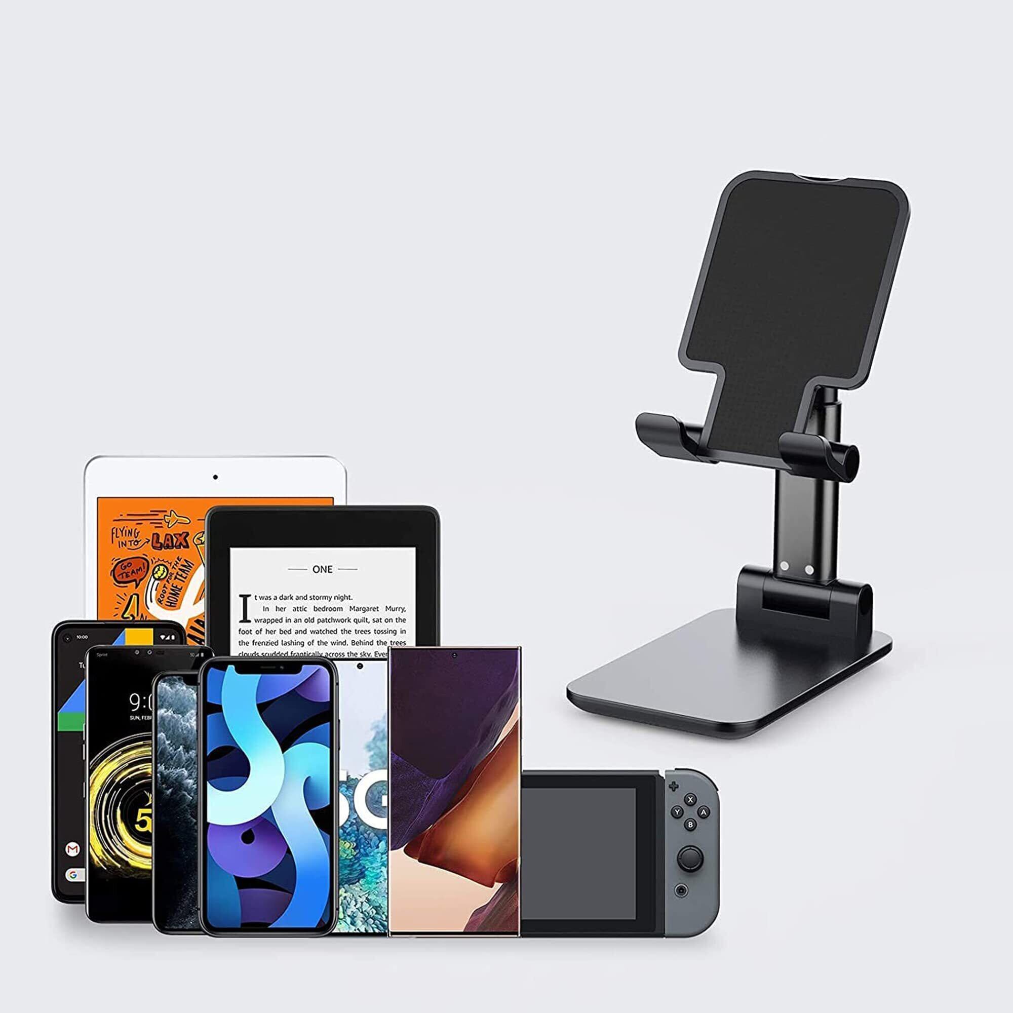スマホスタンド ホルダー角度、幅と高さ調整可能な携帯電話卓上スタンド PCスタンド【滑り止め/充電便利/折りたたみ式】iPhone/iPad/Android/Nintendo Switch Lite/Kindleなど携帯電話 タブレット ゲーム機 電子書籍 (強化版-黒)