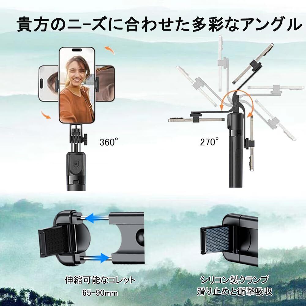 【360°+270°の自由調整】セルフィーロッドクリップは、前世代の360°の水平方向の回転関数を継承しましたが、さらに改善され、270°上下に回転する可能性があるため、心配する必要はありません、射撃角度、トップシューティング、バックシューティング、水平、垂直の画面の切り替えなど、さまざまな撮影方法を簡単に完了し、撮影がより便利です。