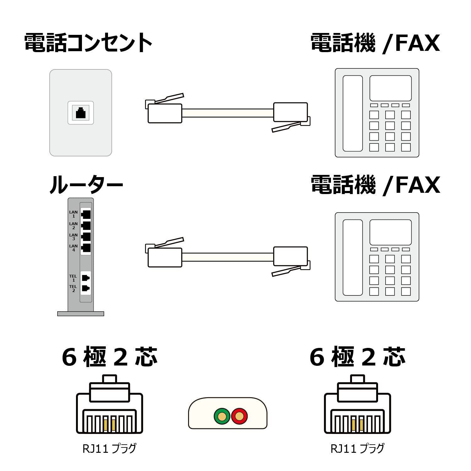 6極2芯用の家庭電話機やFAXの接続に使用できます。