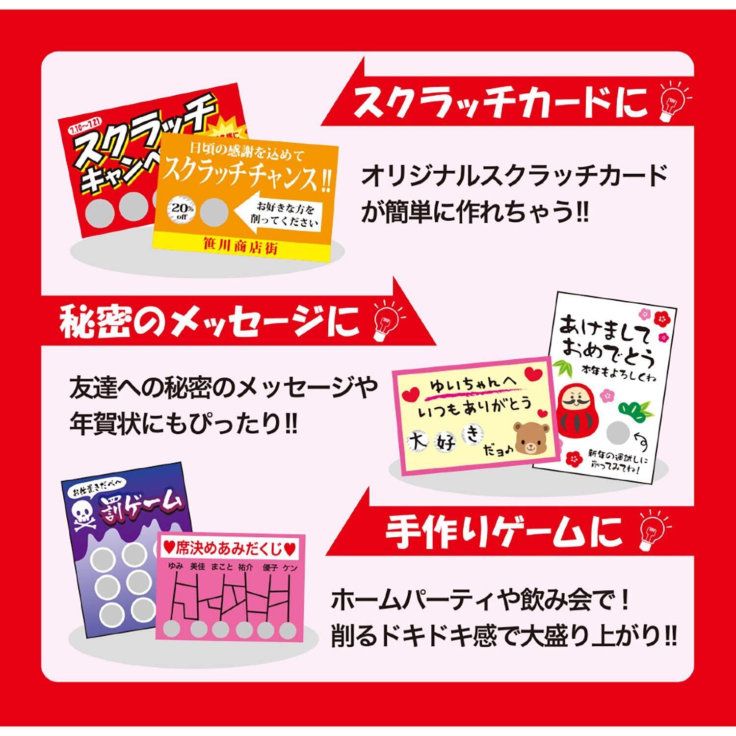 書いて・貼って・削るだけ! スクラッチくじを自分で作れるシールです。