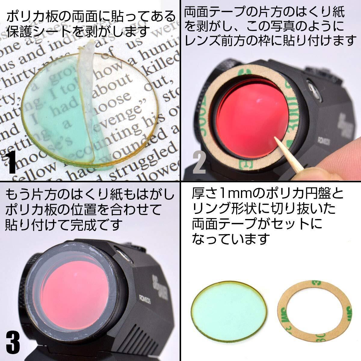 SIG ROMEO 5用。ドットサイトのレンズをサバイバルゲームでの被弾から守るポリカーボネート製のプロテクターです。付属するリング型の超強力両面テープを使ってレンズ前面に貼り付けて使用します。
