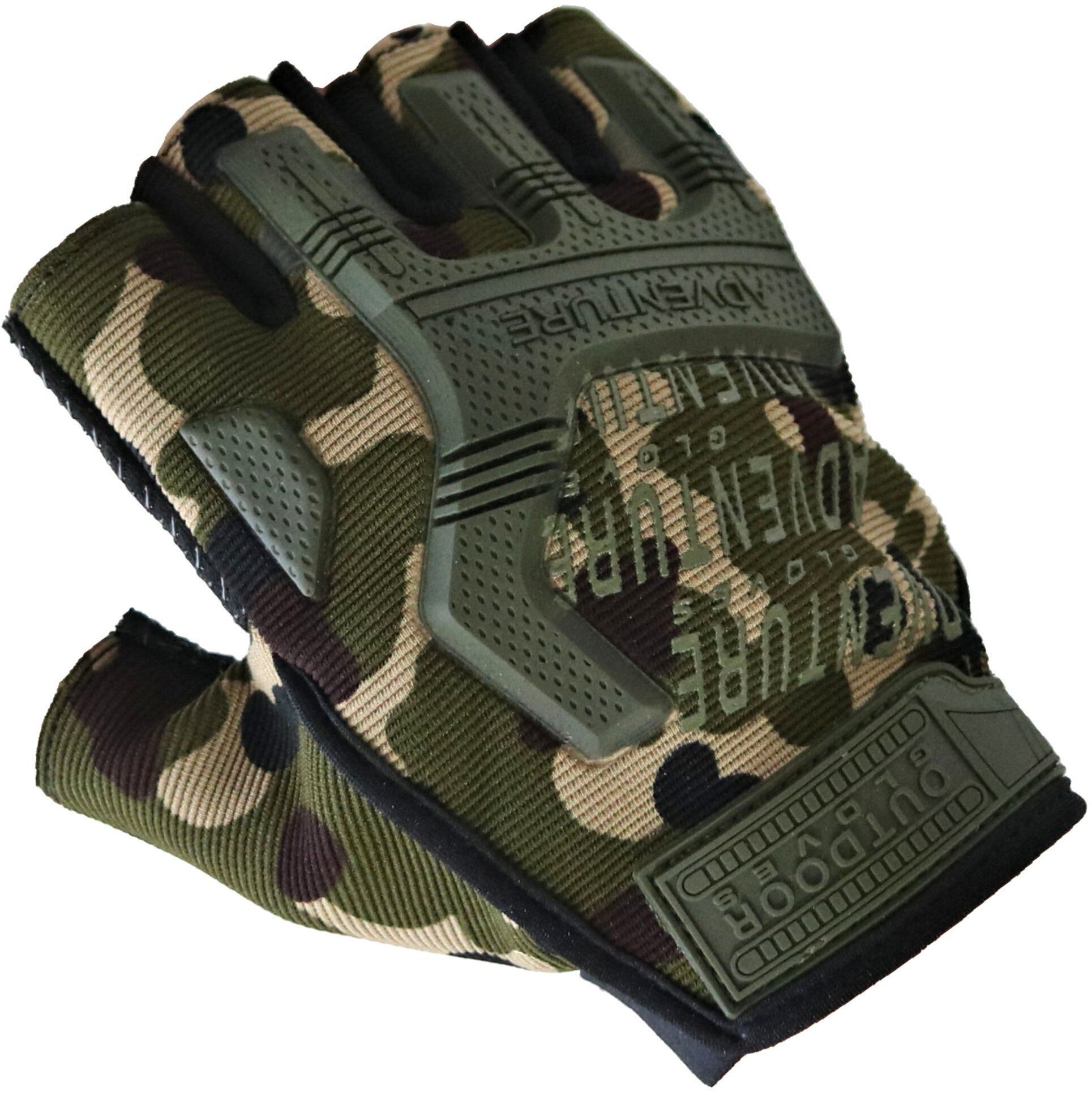 ハーフフィンガー タクティカル グローブ フィンガーレス 指なし 手袋 自転車 釣り サバゲ― アドベンチャー (迷彩)