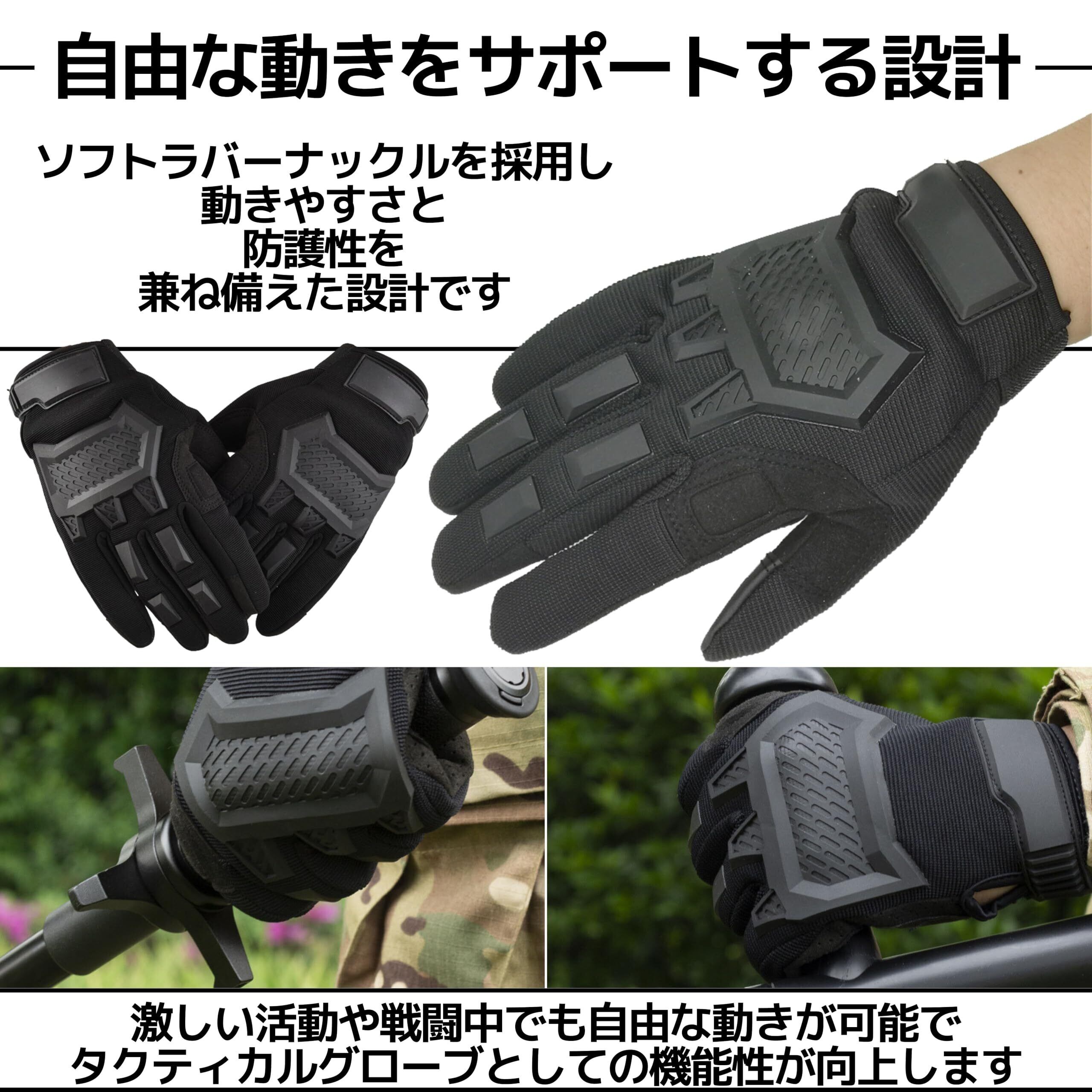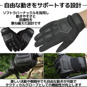 【自由な動きをサポートする設計】ソフトラバーナックルを採用し、動きやすさと防護性を兼ね備えた設計です。激しい活動や戦闘中でも自由な動きが可能で、タクティカルグローブとしての機能性が向上します。