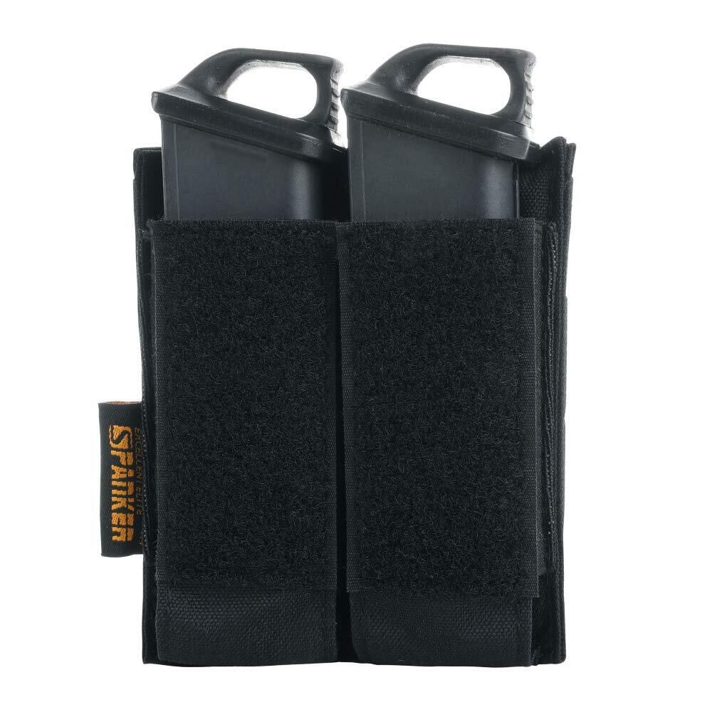 EXCELLENT ELITE SPANKER マガジンポーチ ナイロン製 多機能三連弾倉袋 ピストル収納可能 タクティカルギア モール対応 トップオープン ミリタリー弾倉ポーチ アウトドア キャンプ サバイバルゲーム (二連 ブラック)