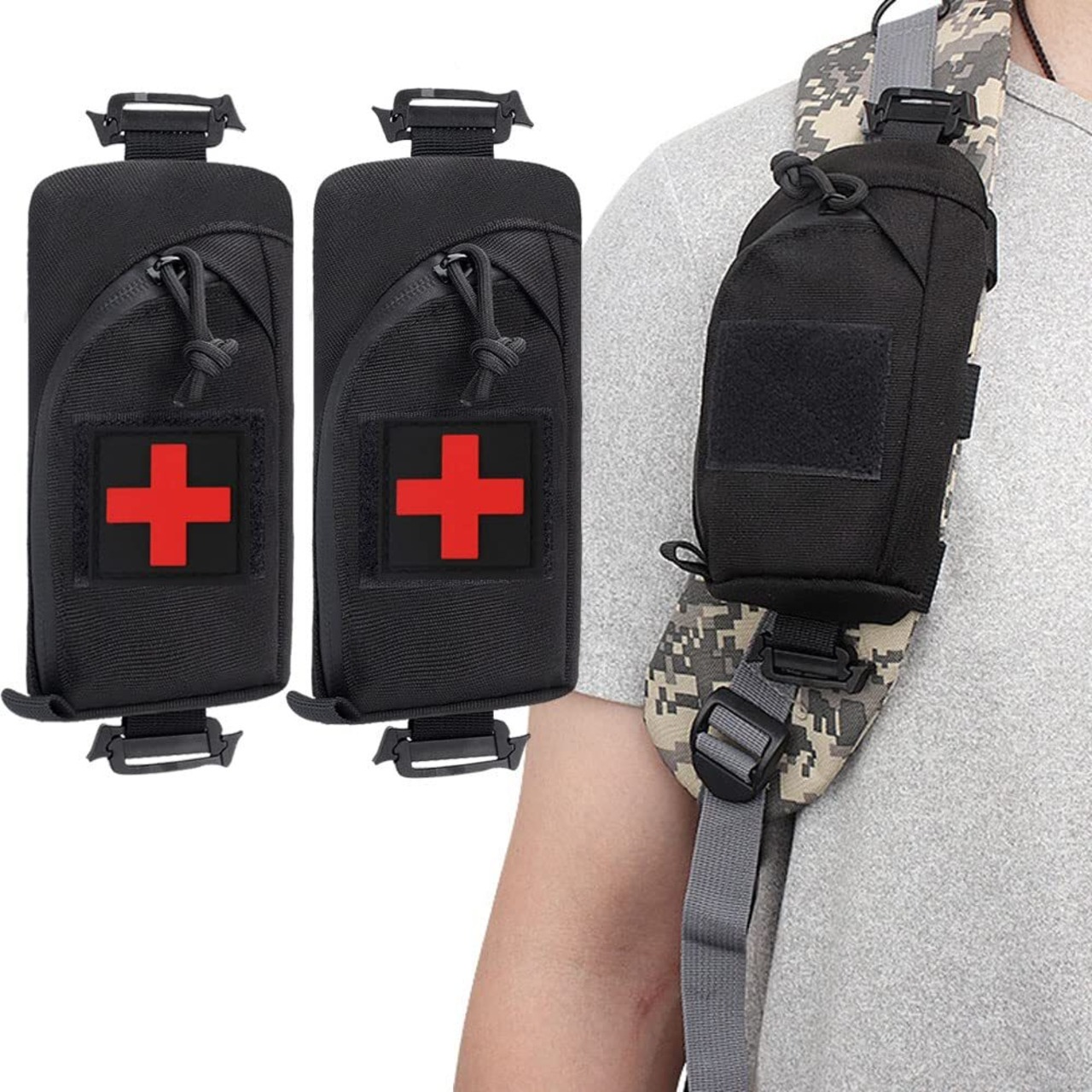SEKIDAR多機能ポーチ ミリタリー タクティカル サバゲー メディカル ポーチ サバゲー 収納可能スマホポーチ ウエストポーチ ファニーパックアクセサリーバッグ ミリタリー風 お財布ポーチ 小物入れ 撥水加工 携帯 便利 (ブラック)