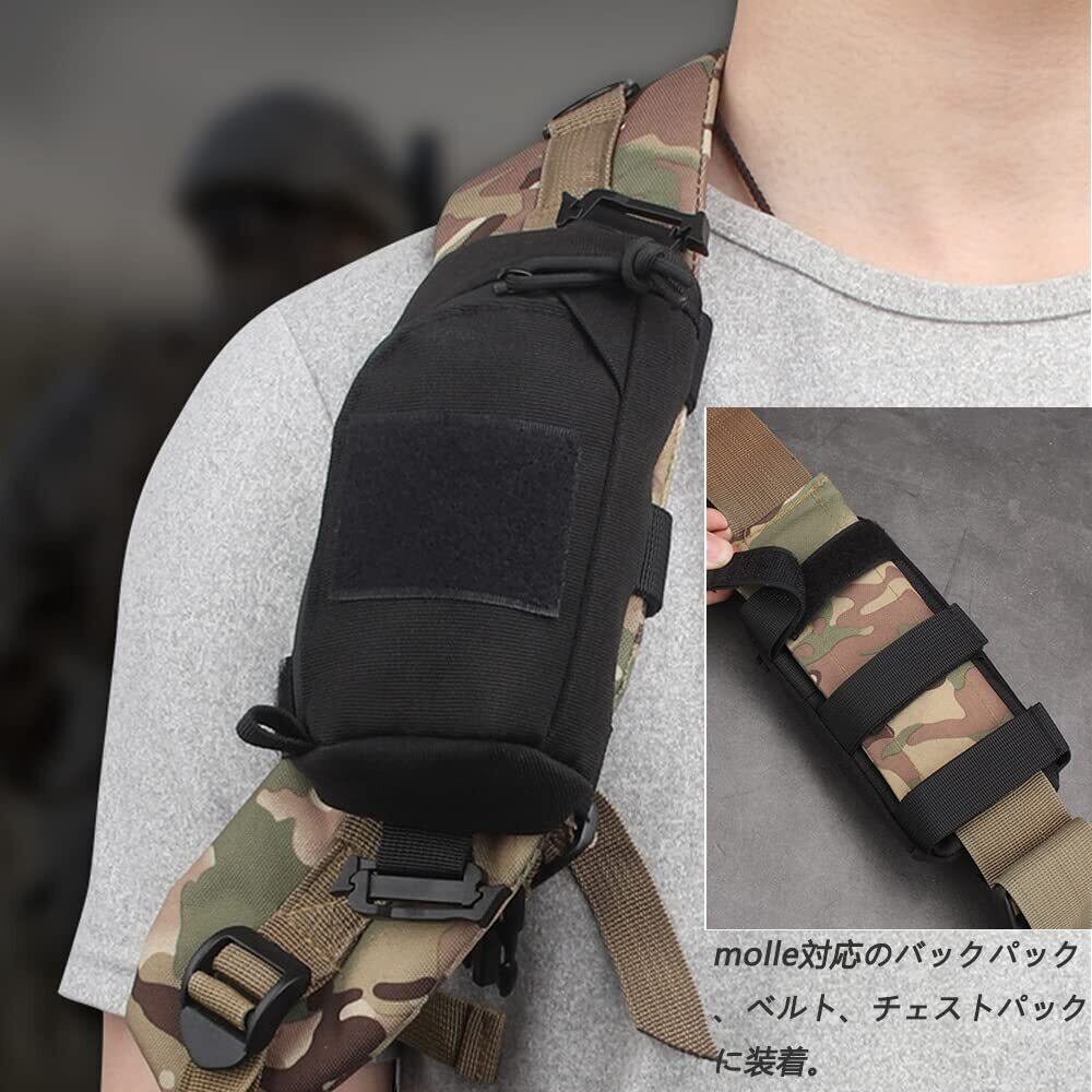 【多機能】のバックパックやベルト、チェストパックに掛けられる、ミリタリーカラーマッチング、クールな見た目、ミリタリー装備のマストアイテム。