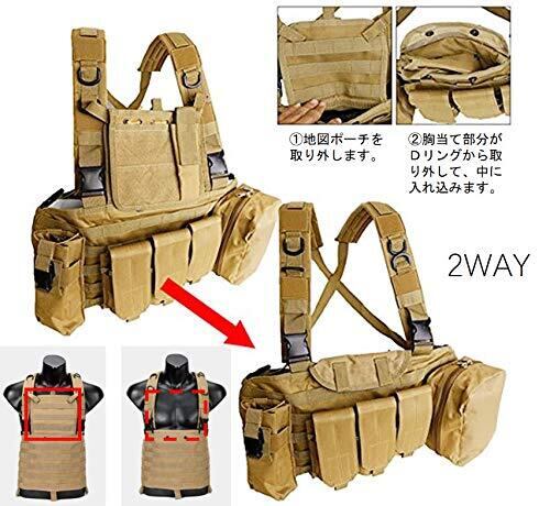 地図ポーチ(懐中電灯ポーチを含む)*1、3連マガジンポーチ*1、多目的ポーチ*1 、無線機ポーチ*1。全てのポーチが着脱可。