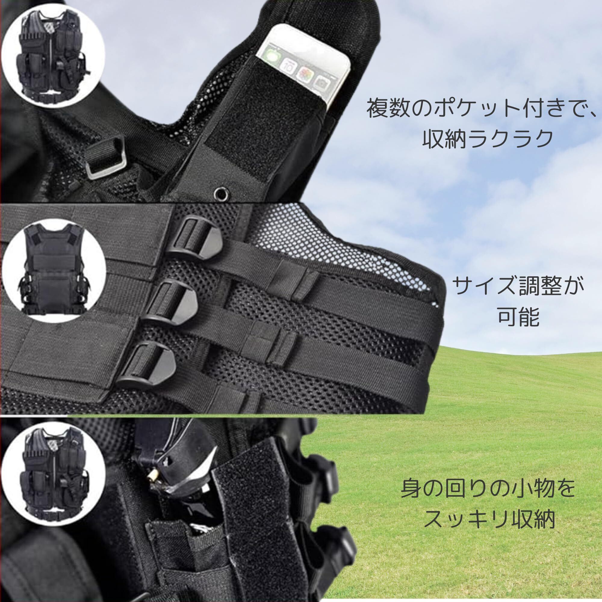 NASSIA サバゲー用メッシュベスト アウトドアスポーツ 装備 収納力 通気性良好 多機能ベスト