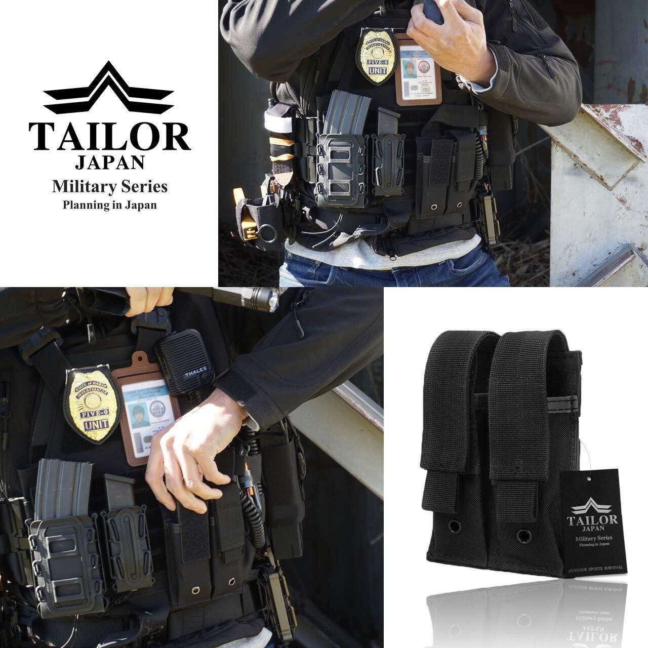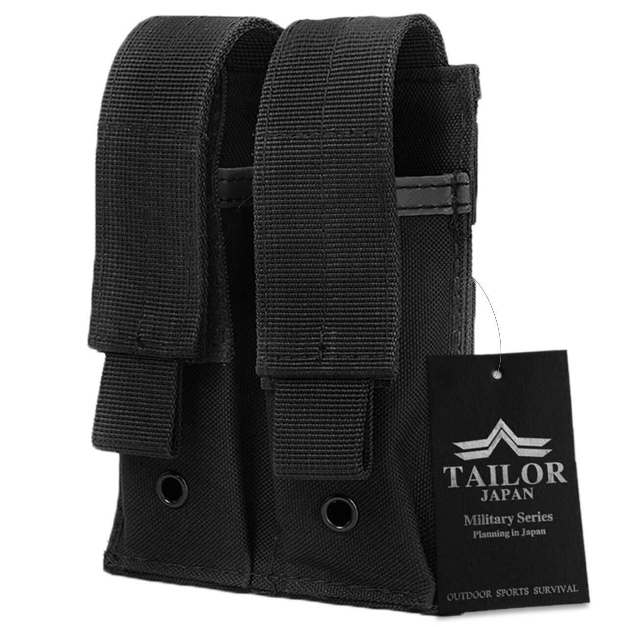 【TAILOR JAPAN】サバゲー マガジンポーチ ハンドガン ダブル マグポーチ 小物入れ モール 強化ナイロン (ブラック)