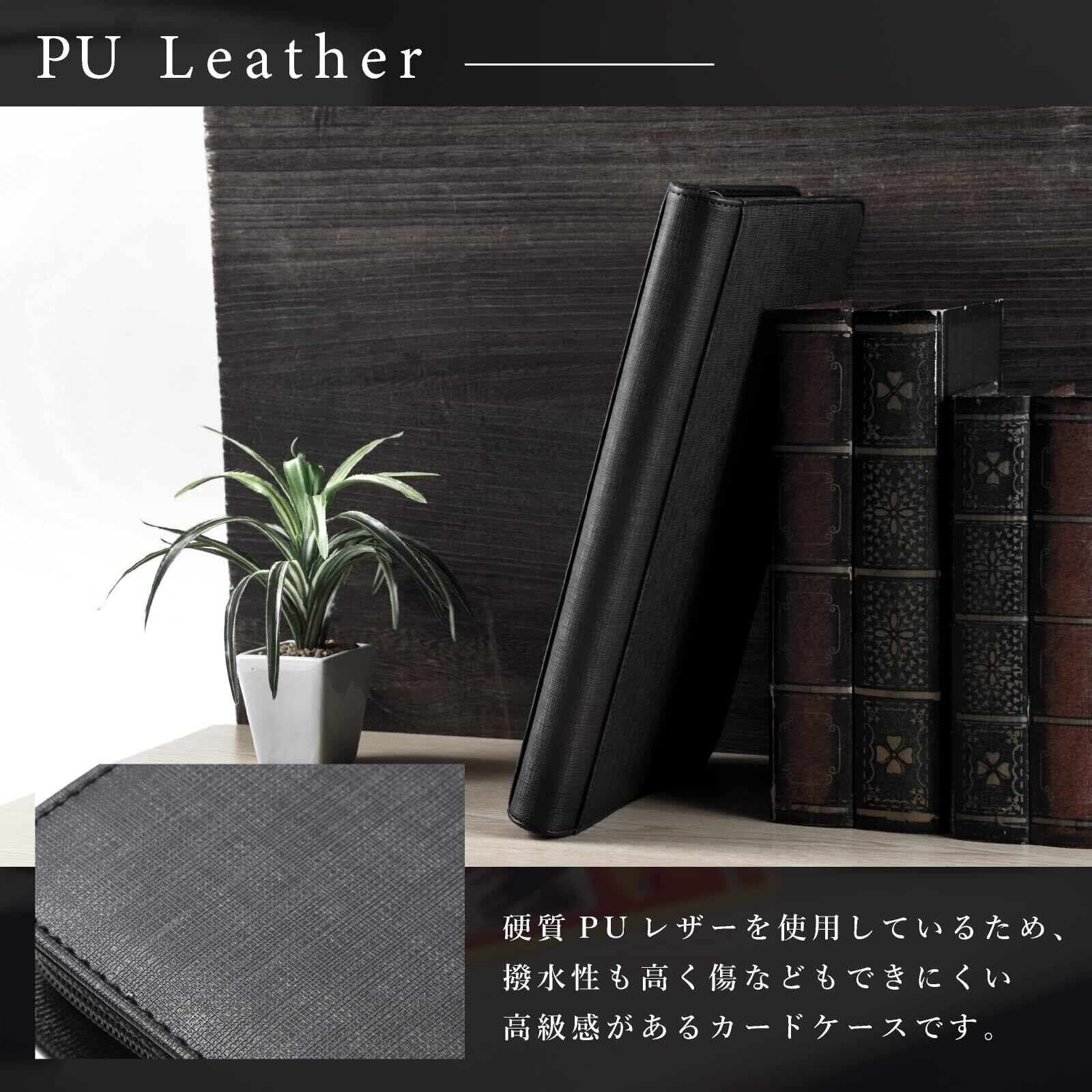 【高品質素材】高品質の透明PP素材で見やすいクリアポケットです。カードケースの外側はPU素材のため撥水機能もついています。