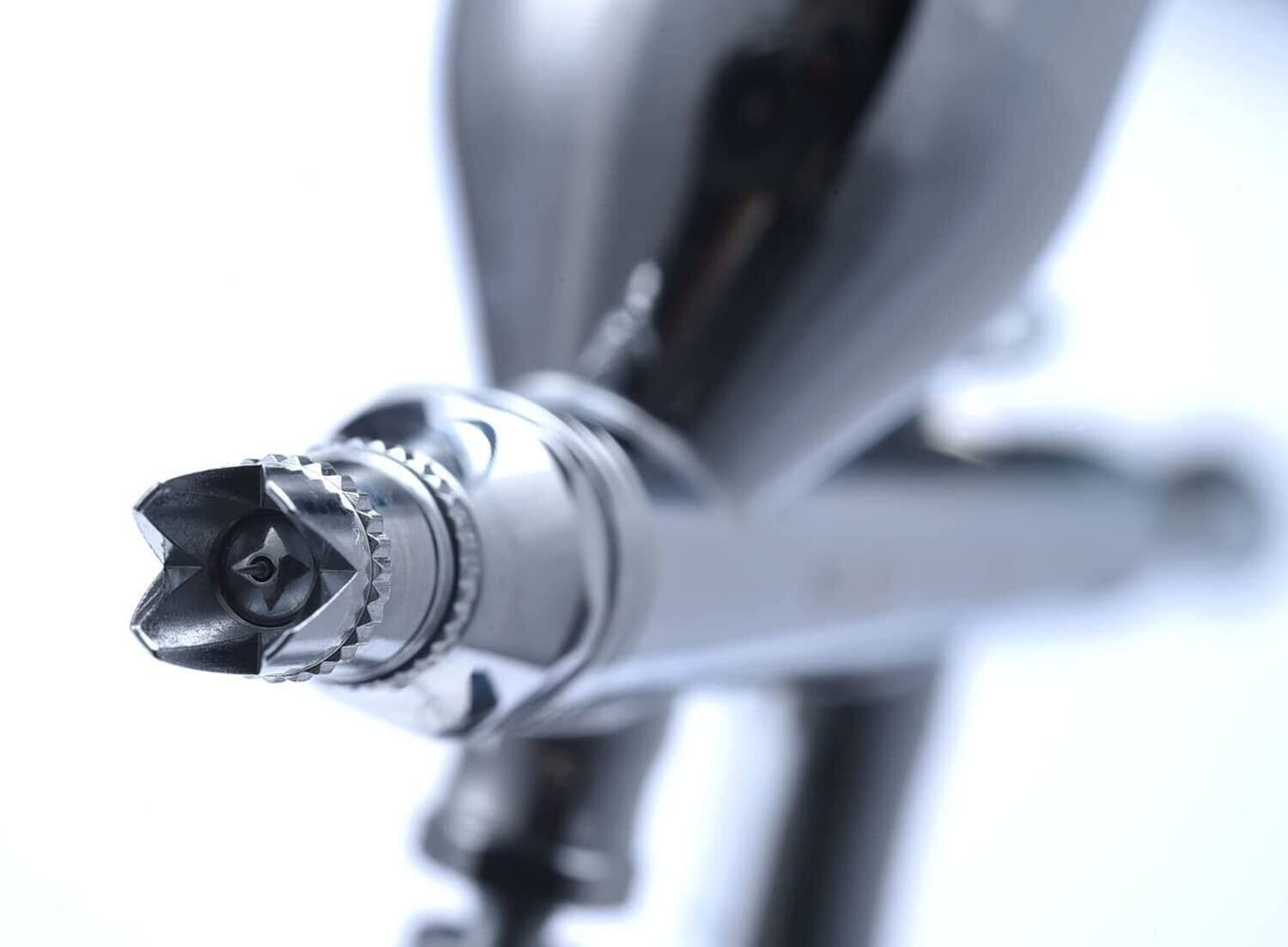 0.3mmのノズル口径に、セミイージーソフトボタン、エアアジャストシステム、さらにエア圧を安定させるエアアップ機構を搭載した究極の精密塗装用エアブラシです。10ccカップ付き。 【プラチナタイプに搭載の優れた機構】 ・セミイージーソフトボタン: 吹き始めの塗料の噴き出しをスムースに促がします。エアブラシ内にたまった空気を調整することで塗料の吹き始めにおこりがちな、つぶ状の塗料が出にくくなります。 ・エアアジャストシステム: 0~最大まで、エア風量の調整が手元で可能になります。塗装中の微調整に役立ちます。 ・エアアップ機構: 低圧のエアーでも安定した作業がおこなえるようにエアブラシ内に独自のチュ-ニングをしています。 【ダブルアクションとは】 ボタンを押すことによりエアーが出、後ろに引くことにより塗料が出始めます。作業中でも自由に塗料量をコントロールできるため、幅広い表現が可能です。ニードルストッパーの設定により、一定位置以上にニードルが後退しないようにできるため、シングルアクションのような使い方もできます。いろいろな場面に対応できるため種類も多く発売されており、エアブラシの主流となっています。 (より)