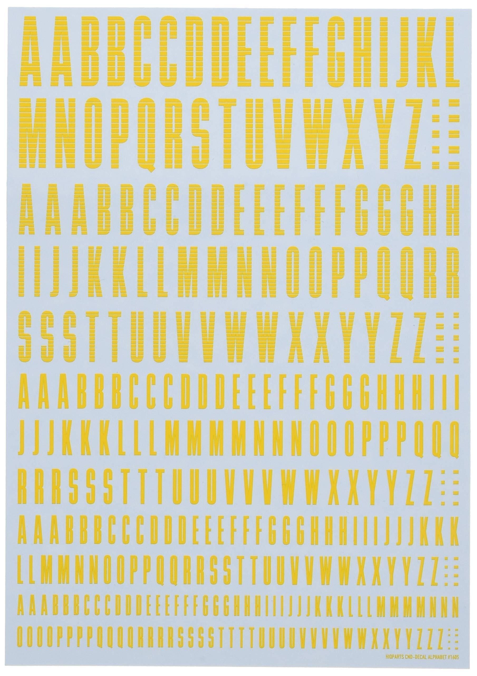 ハイキューパーツ社より「CNDデカール アルファベット 黄橙色 1枚入」の水転写デカールです。