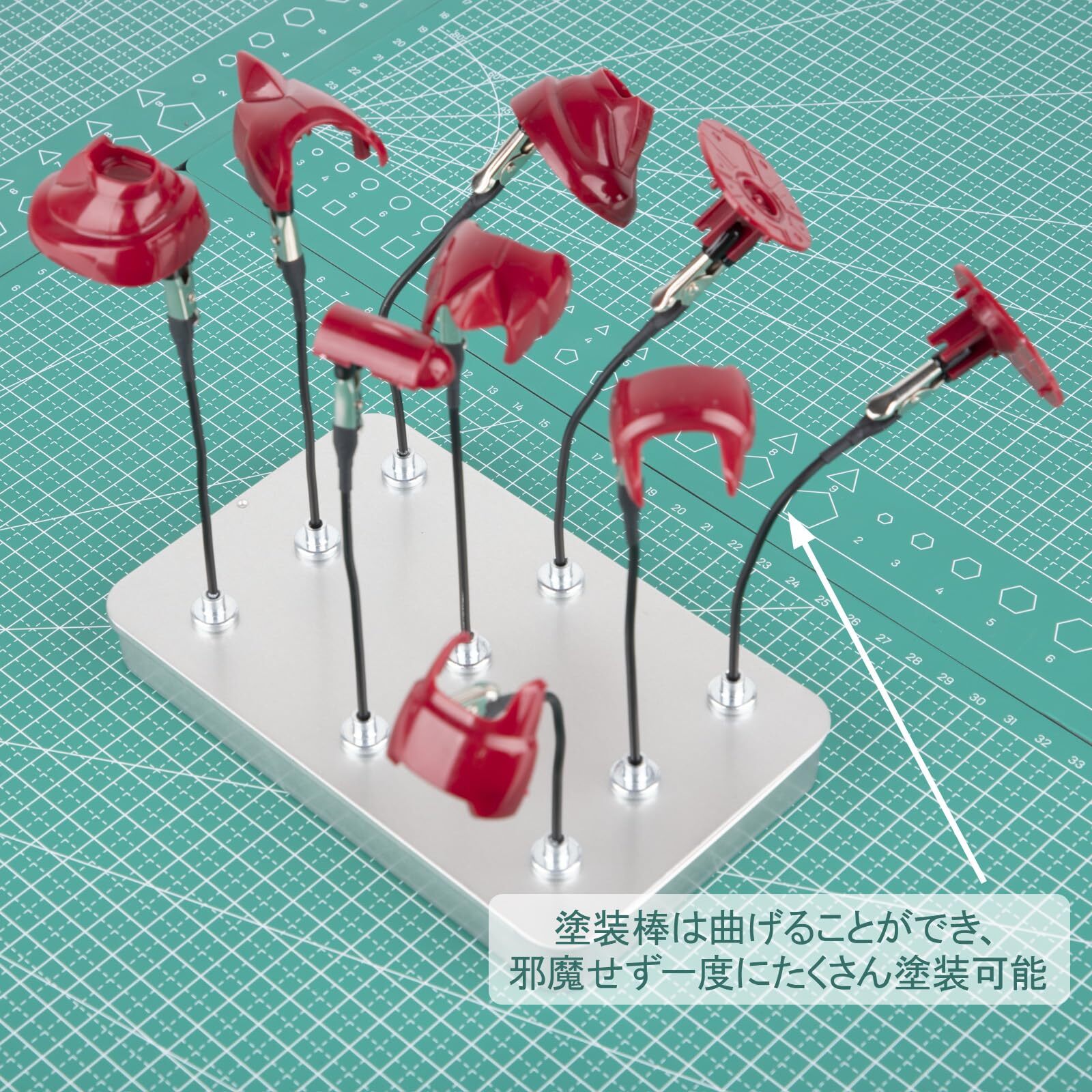 曲げ可能持ち手:塗装棒は曲げることができ、邪魔せず一度にたくさん塗装可能です。大きいパーツでも、2本以上の曲がった塗装棒で安定して掴めます。