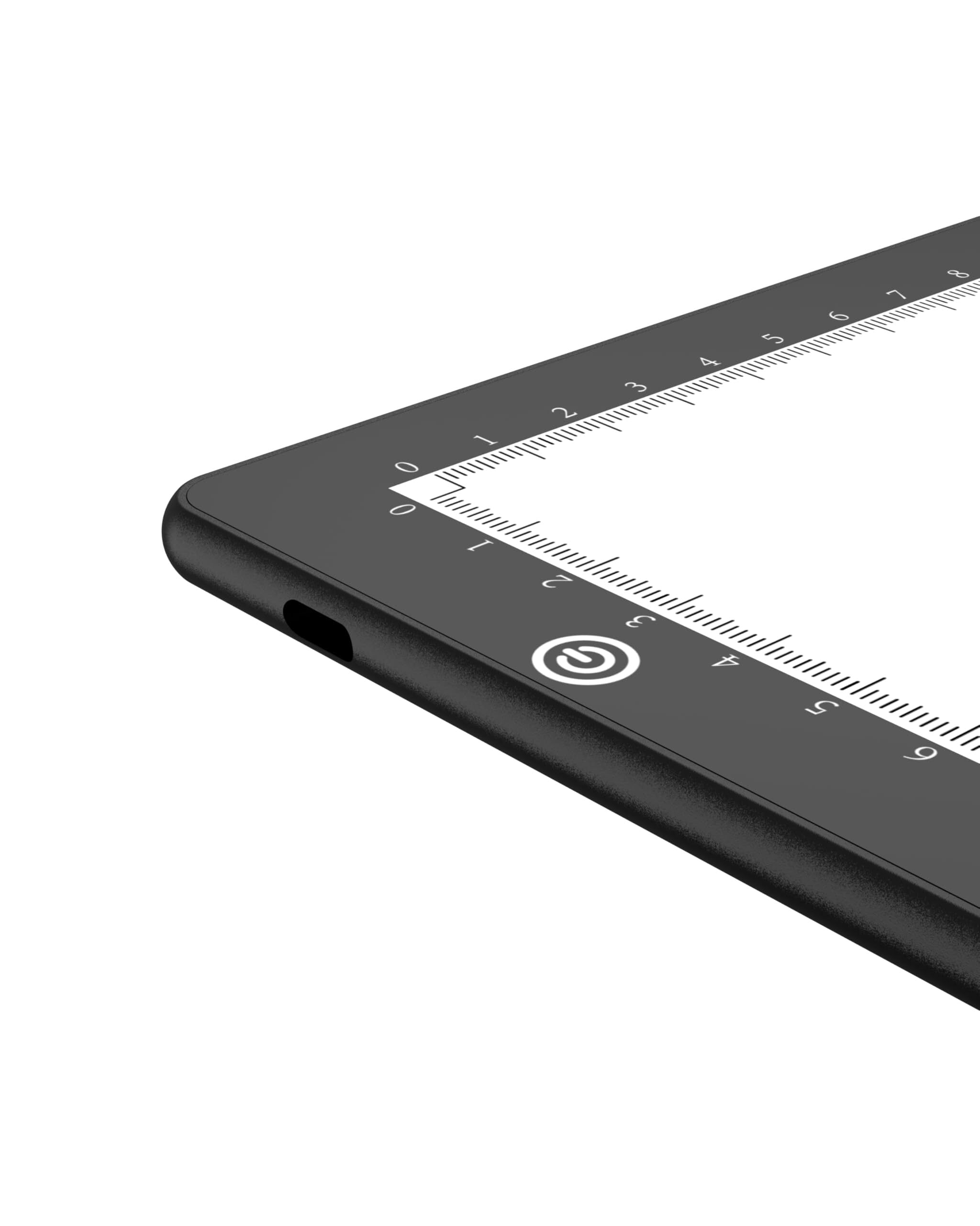 使いやすさの追求により前面フルフラットを実現。アートワークに便利な目盛表示。【光点・光ムラについて】他のトレース台と同様、稀に光点や、圧力がかかった部分に光ムラが発生する場合がありますが、使用に問題はございませんので、そのままご使用いただけます。
