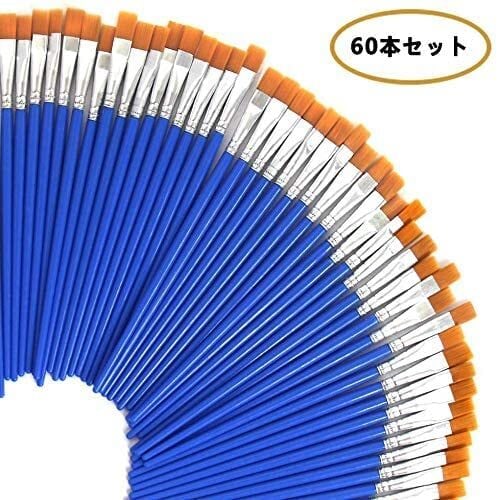 【商品仕様】セット内容:60本セット。サイズ:17.5cm、素材:刷毛部分ナイロン。 【色分けで使いやすい】60本のセット数があるので、どんどん使えます。色ごとに筆を分けて使用することができ、色の切り替えも楽々で、時短にもなります。 【柔らかく耐久性に優れ】優れた柔らかさと耐久性を兼ね備えたナイロン筆は、長時間使用しても疲れにくく、毛切れや毛抜けが起こりにくいため、長持ちします。 【簡単なお手入れ】使用後は水やぬるま湯でよく洗い、水分を切って保管するだけでOK。乾燥させるときは直射日光の当たらない風通しの良い場所に置いてください。 【多彩な用途】水彩画、油絵、アクリル画、ネイルアート、ボディペイント、陶芸の絵付け、DIYプロジェクトなど、様々な用途に対応します。
