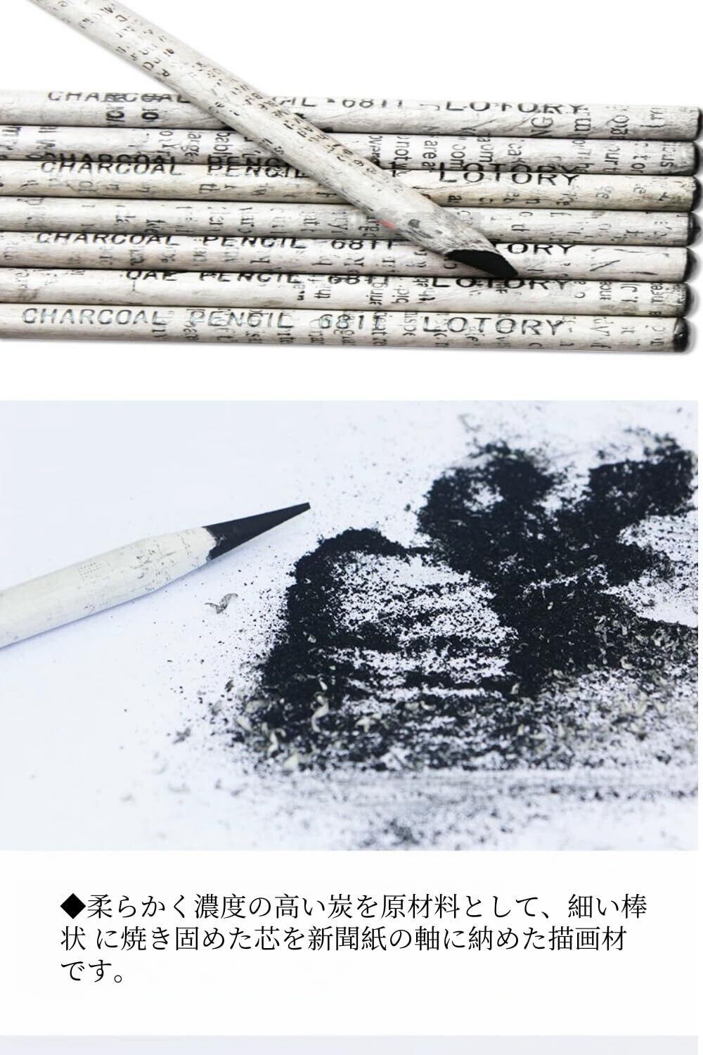 【優れた材質】柔らかく濃度の高い炭を原材料として、細い棒状に焼き固めた芯を新聞紙の軸に納めた描画材です。環境に優しい素材であり、安全無毒で安心して使えます。