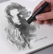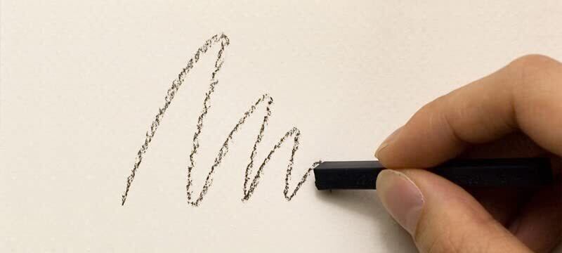 グラファイト、炭、粘土で棒状に固めて成型した後、焼成された画材です。コンテ全体を利用することができます。角柱型のコンテで描画する際には、先端の角部分で線描をしますが、横にコンテを寝かせて側面部分を使うことで、幅のある塗りができます。