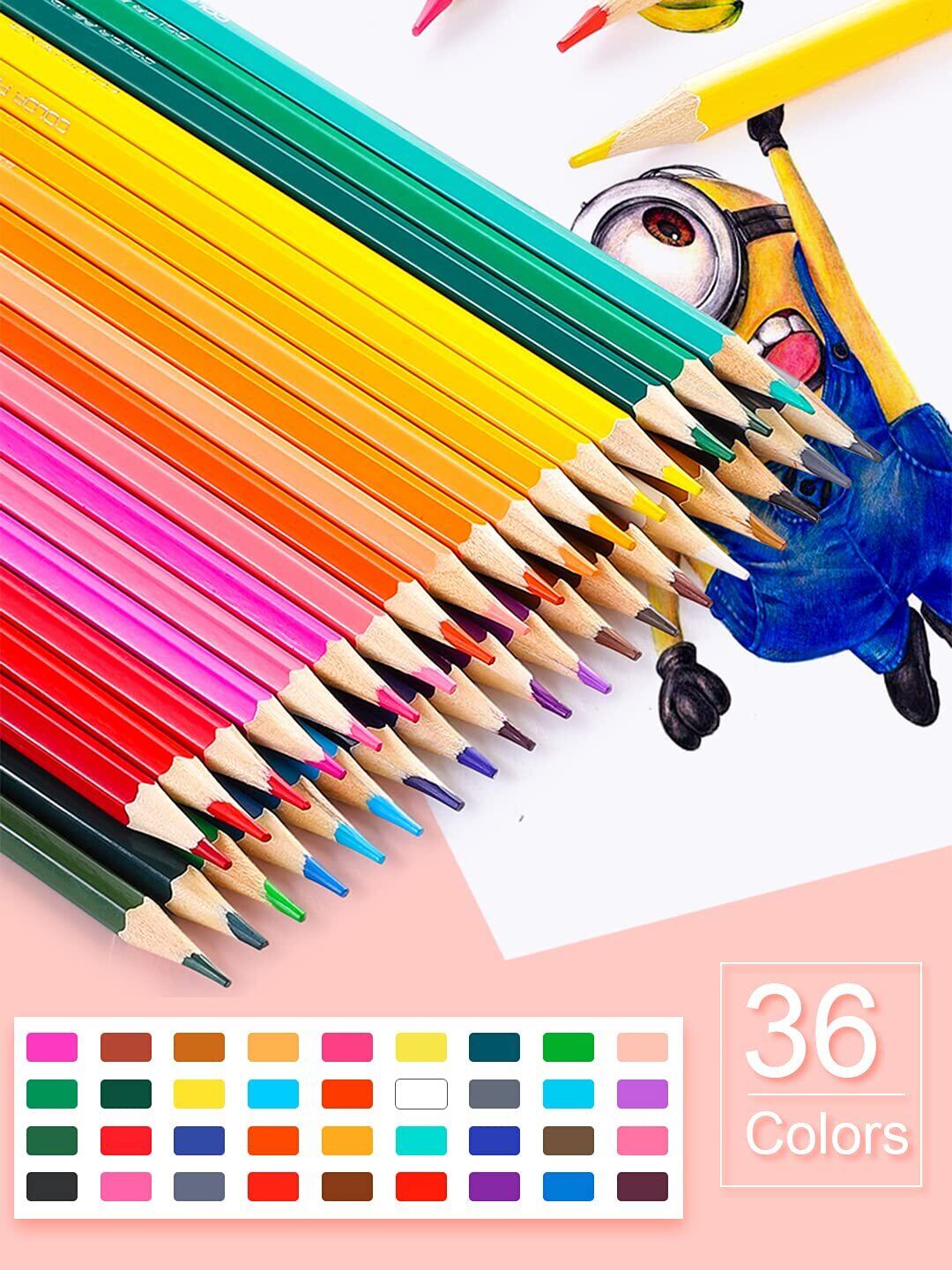 Deli (デリ) 色鉛筆36本セット 鉛筆削り付きチューブキャップ 鮮やかな色 事前に削った鉛筆 学校/子供/教員向け 柔らかい芯 アート 描画 鉛筆 塗り絵/スケッチ/絵画用
