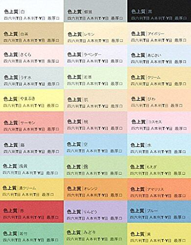 色は配色効能があり明るく美麗なものが多分で、インクののりも良く印刷用紙として利用されていますが、近年コピーや各種プリンターの普及により、手作りの案内やショーカード、包装用紙などに広く使用されています。色数も30色あり、OA用紙として資料などを項目別に色分けする場合にも適合です。
