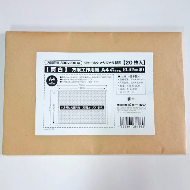 <両白> 方眼工作用紙 A4よりやや大きめ 0.42mm厚(方眼面積300×200mm)【20枚入】